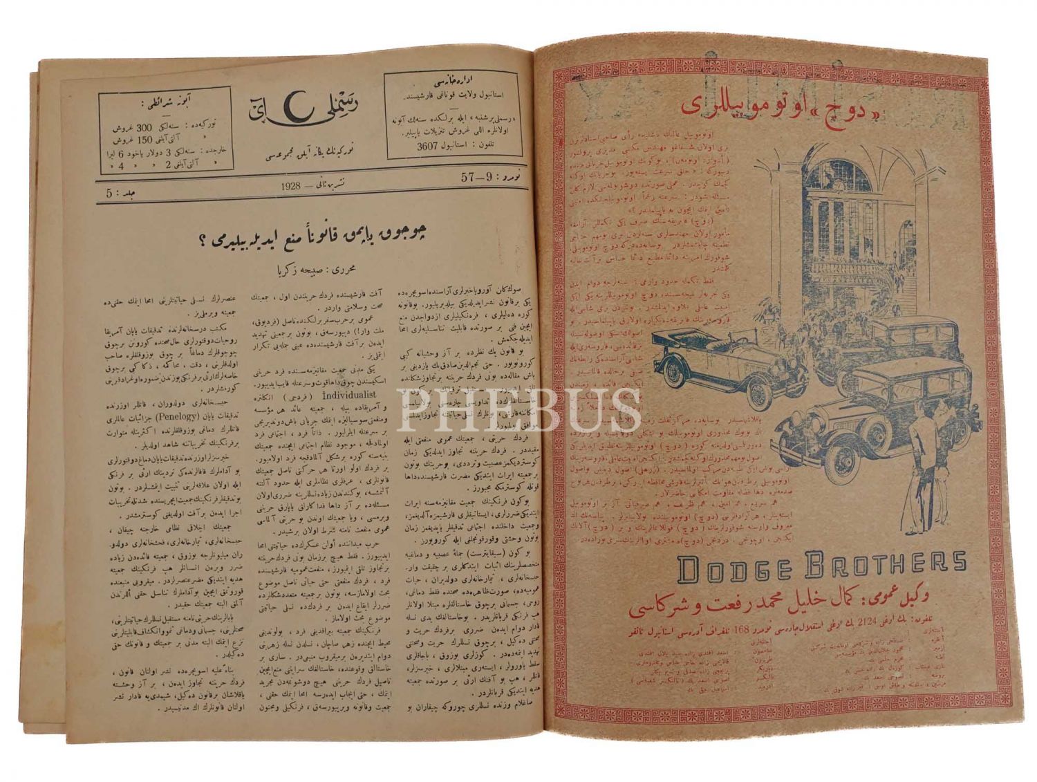 RESİMLİ AY dergisinin, bir kısmı Latin harfleriyle bir kısmı Osmanlıca yayımlanan Teşrinisani 1928 tarihli 5. sayısı, 23x31 cm...