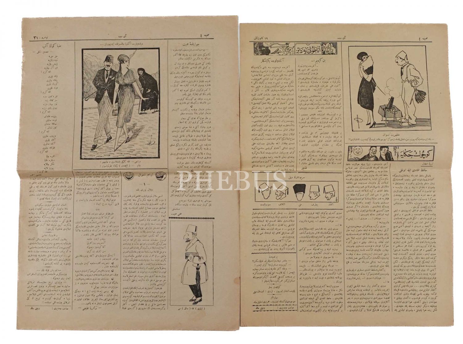 AYDEDE´nin 19 Kanunisani 1338 tarihli 6. sayısı ve 17 Nisan 1338 tarihli 31. sayısı, 28x41 cm...