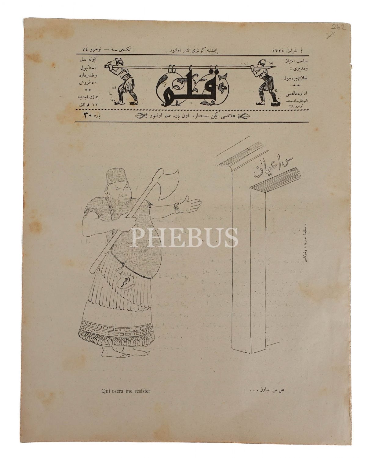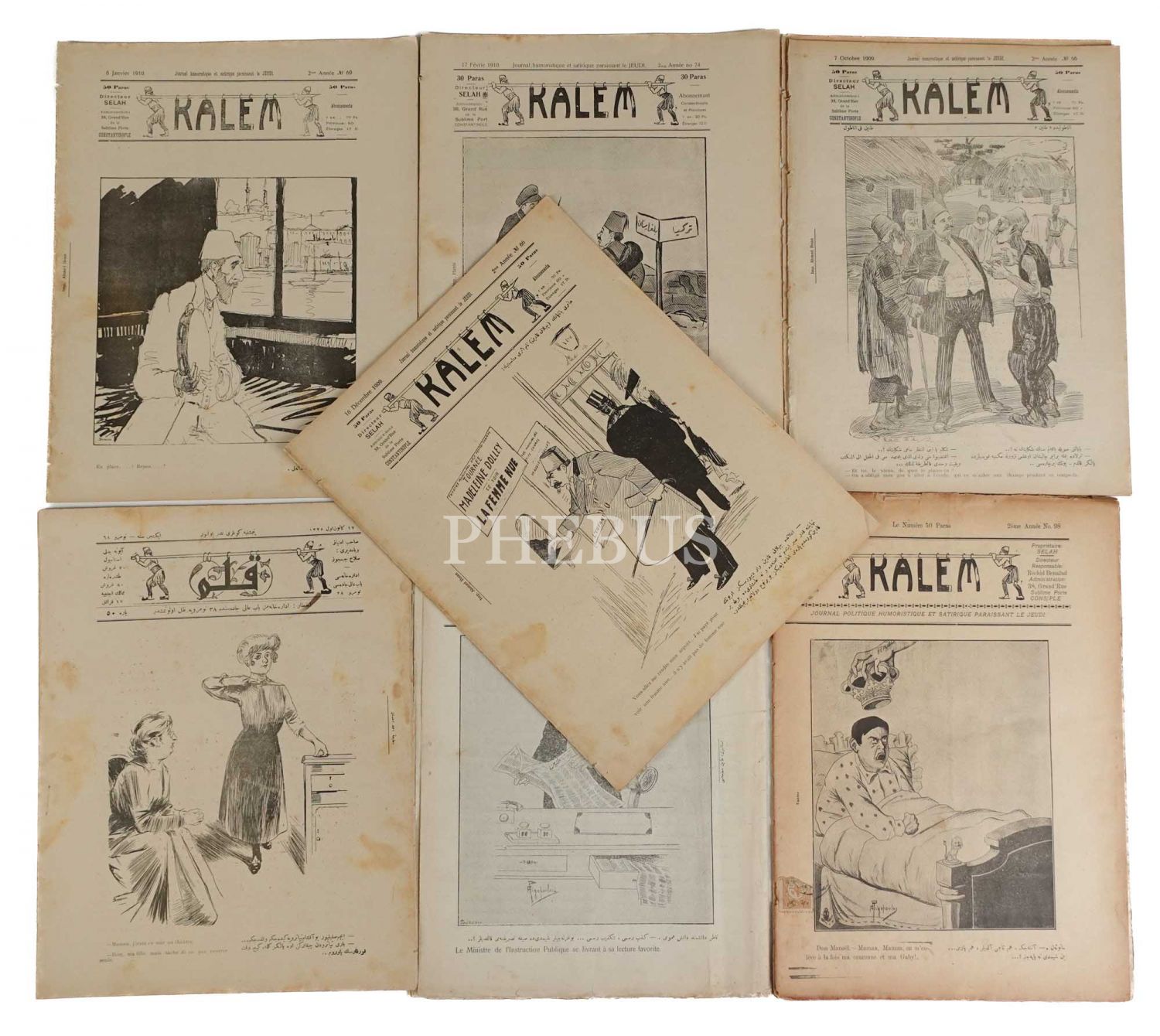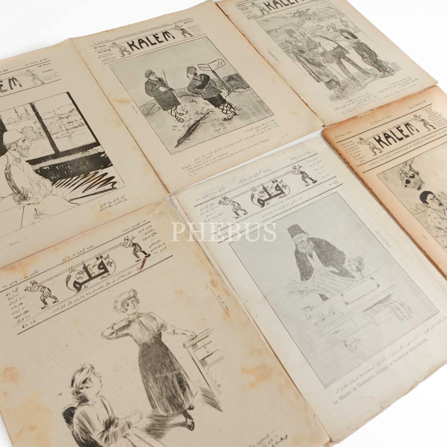 KALEM dergisinin 7 Kasım 1908 ilâ 3 Kasım 1910 tarihleri arasında yayımlanan 56, 66, 68, 69, 74, 98 ve 100. sayıları, 22x30 cm...
