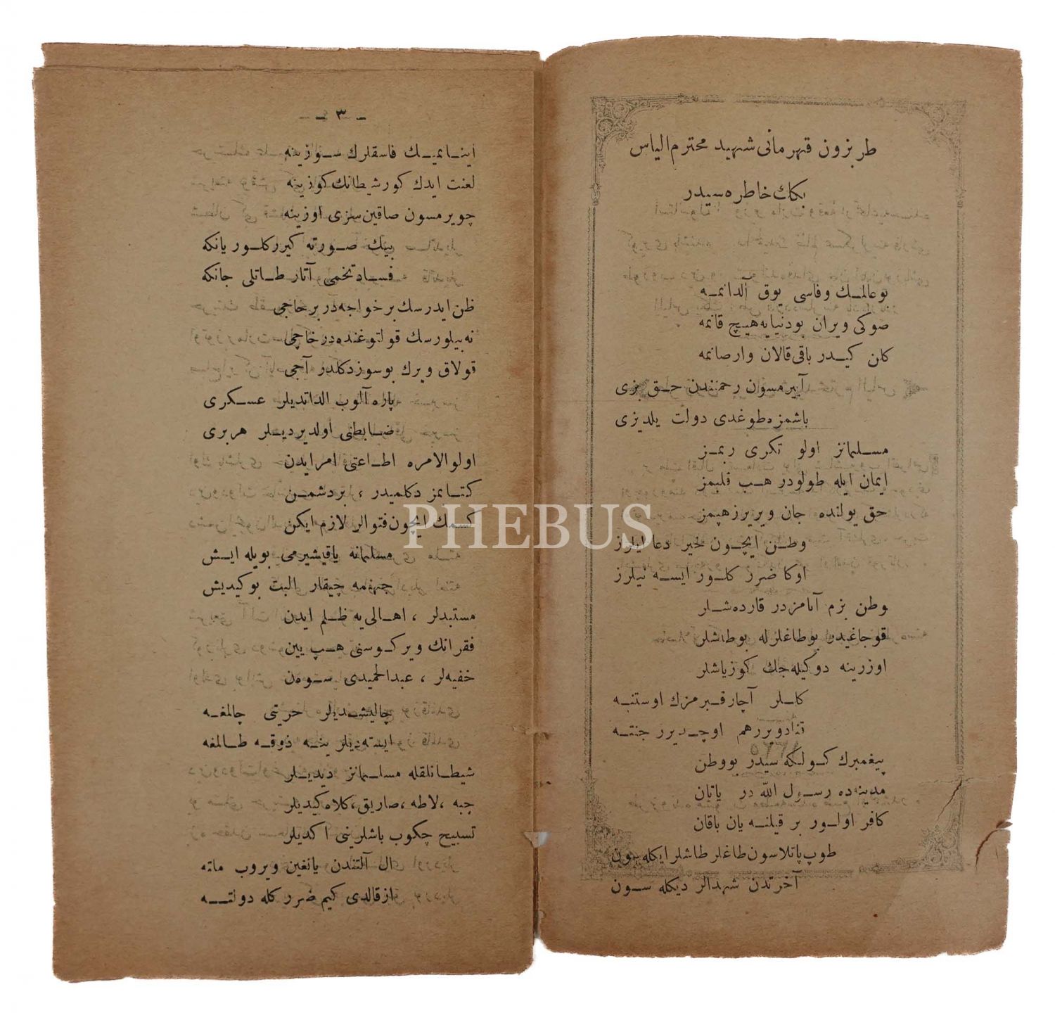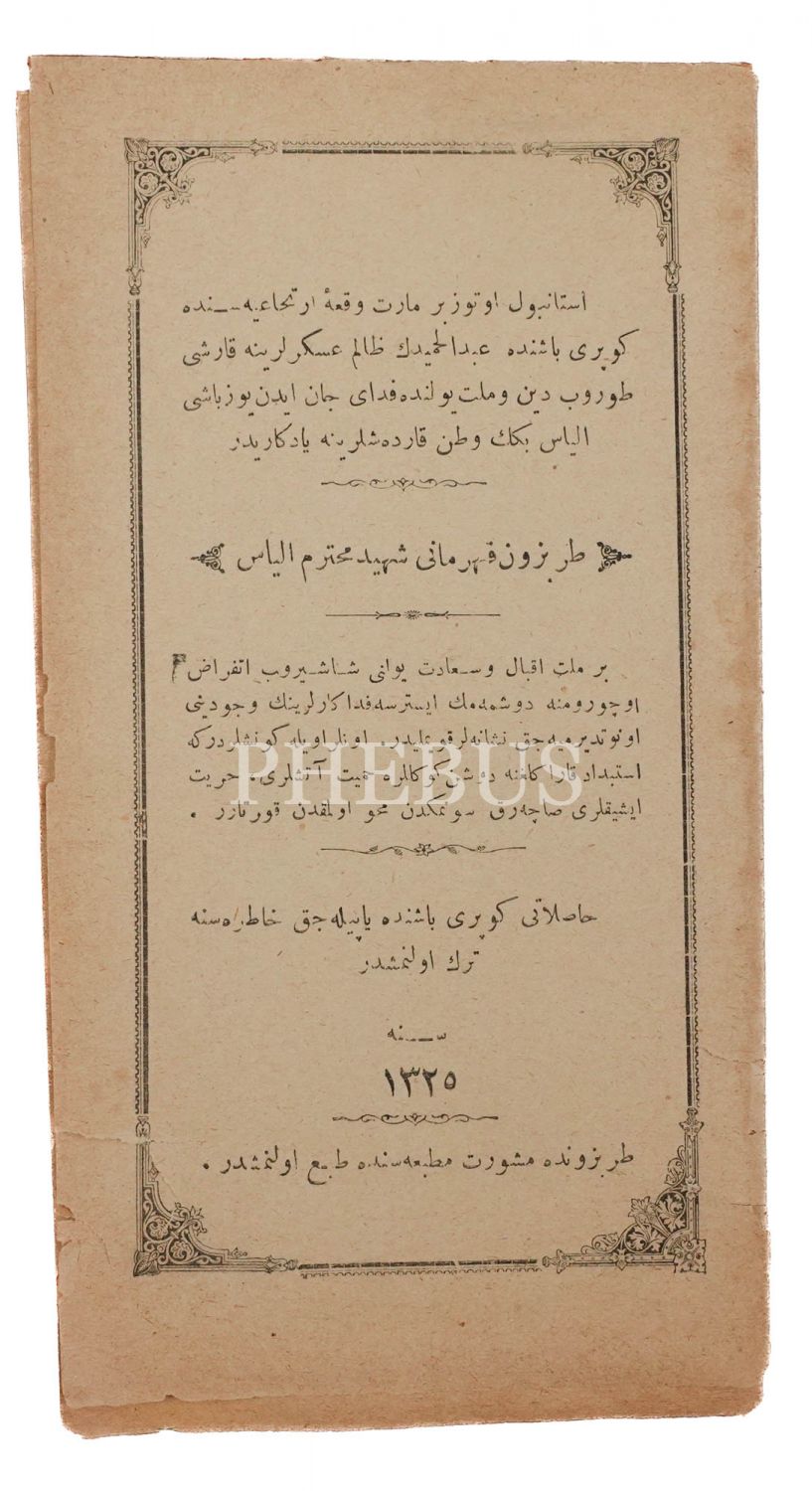 TRABZON KAHRAMANI ŞEHİT MUHTEREM İLYAS, 1325, Trabzon Muşaveret Matbaası, 15 sayfa, 12x20 cm...