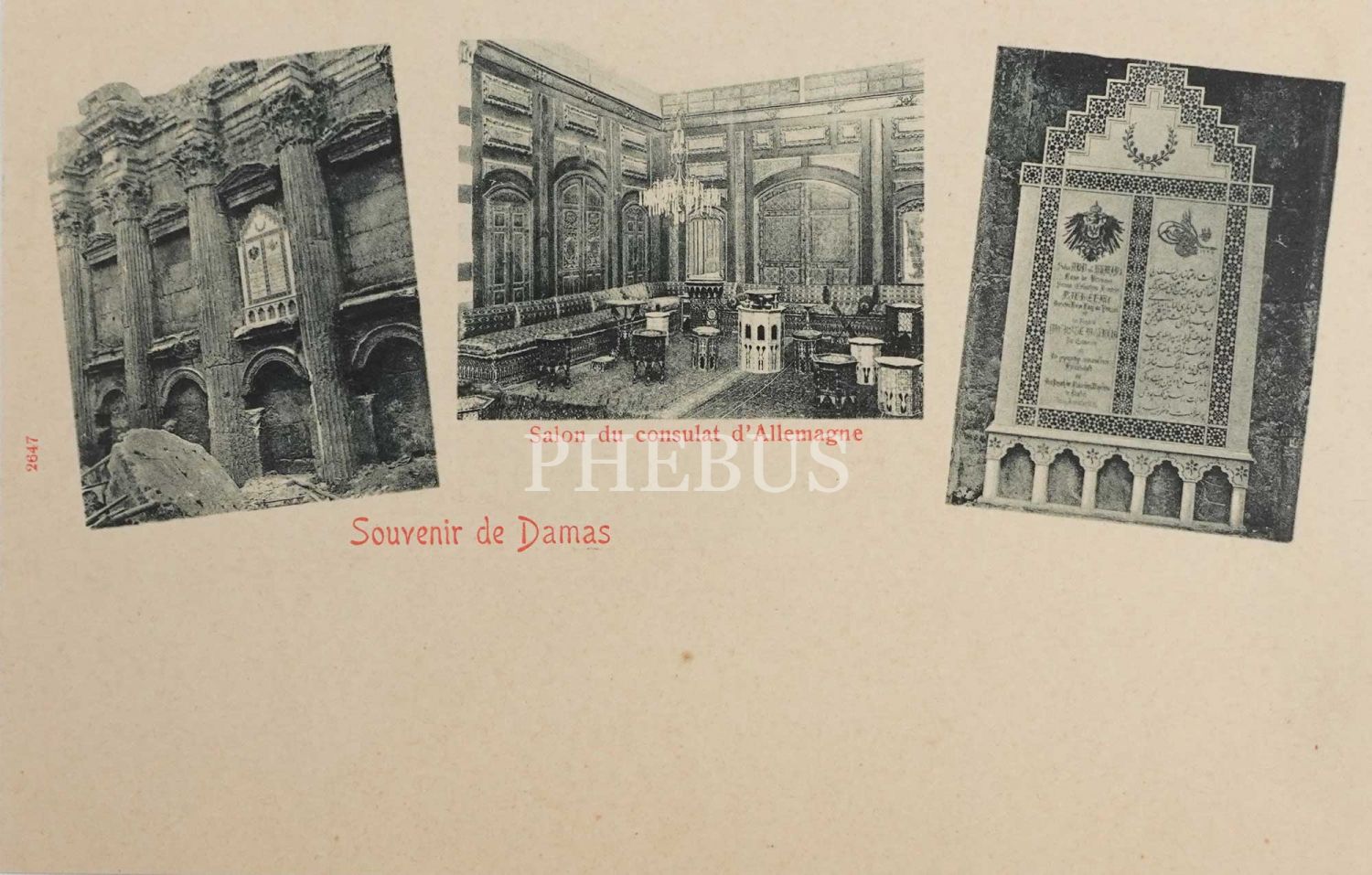 Şam - Alman Konsolosluğu Bekleme Salonu, "Souvenir de Damas - Salon du consulat d´Allemagne", 14x9 cm...