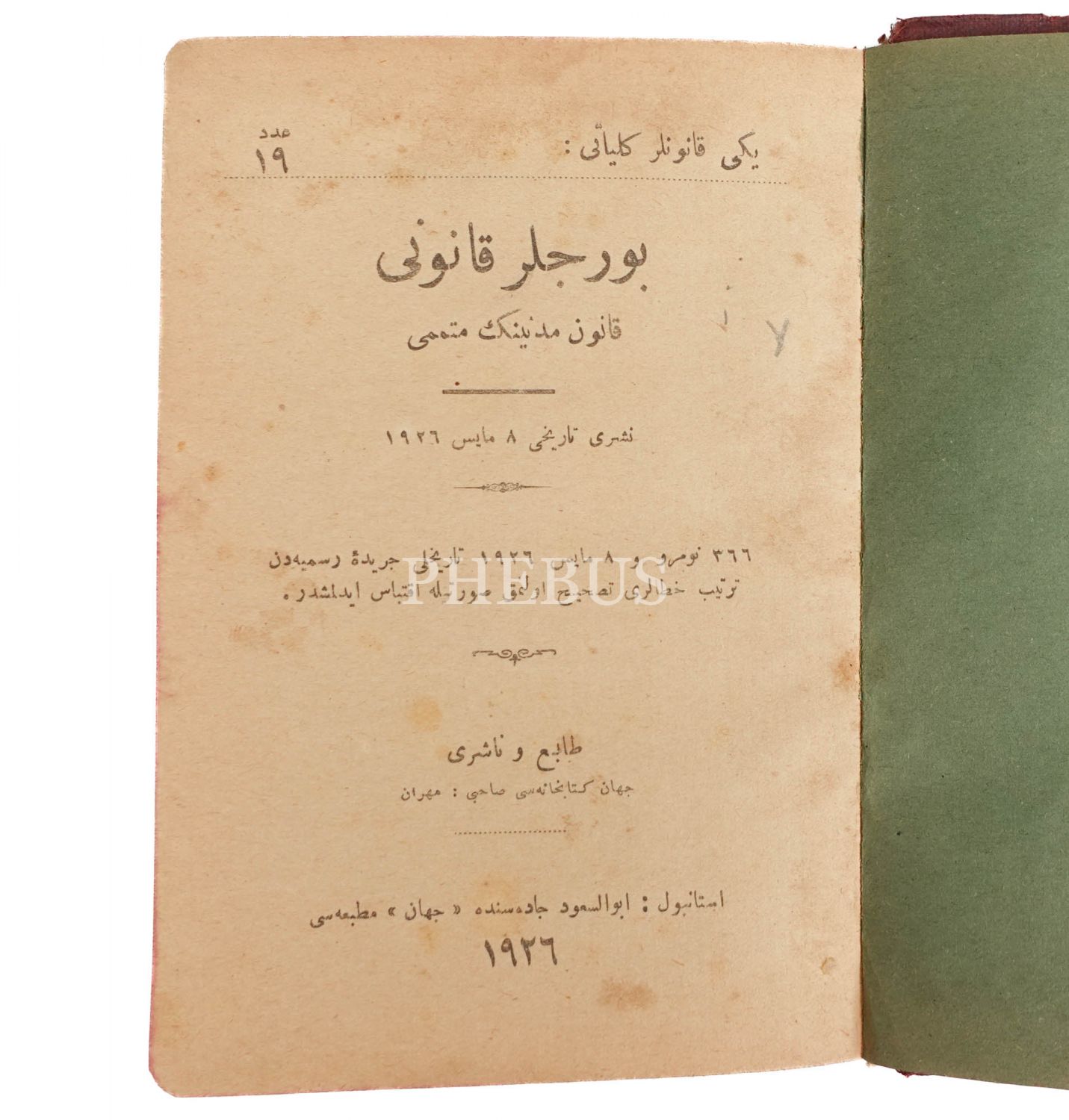 BORÇLAR KANUNU, 1926, Cihan Matbaası, 13x17 cm...
