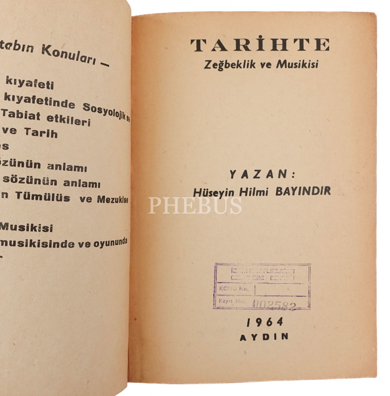 TARİHTE ZEĞBEKLİK VE MUSİKİSİ, Hüseyin Hilmi Bayındır, 1964, Taşkın Matbaası, Aydın, 35 sayfa, 14x20 cm...