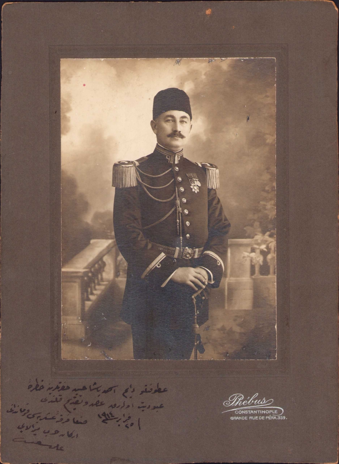 Ali Said Paşa [Akbaytogan], San'a Fırka-i Askeriyesi Kumandanı Erkan-ı Harb Miralayı, 1914 tarihli, imzalı ve ithaflı, Phebus Fotoğrafhanesi, 10x15 cm.