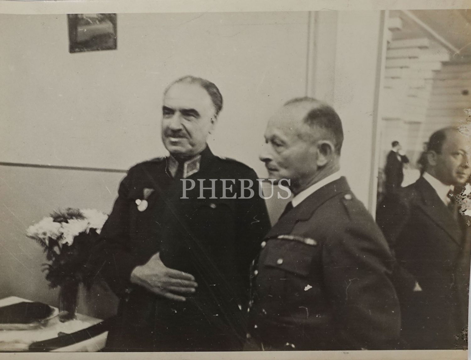 19 Ekim 1939 tarihinde imzalanan "Türk-İngiliz-Fransız Bağlaşması"(Ankara Antlaşması ismiyle de anılır) kapsamında Türkiye´ye ziyarete gelen İngiliz general ve İngiliz heyetinin şerefine verilen yemekte Mareşal Fevzi Çakmak ve İngiliz general, 22 Ekim 1939, 17x13 cm...