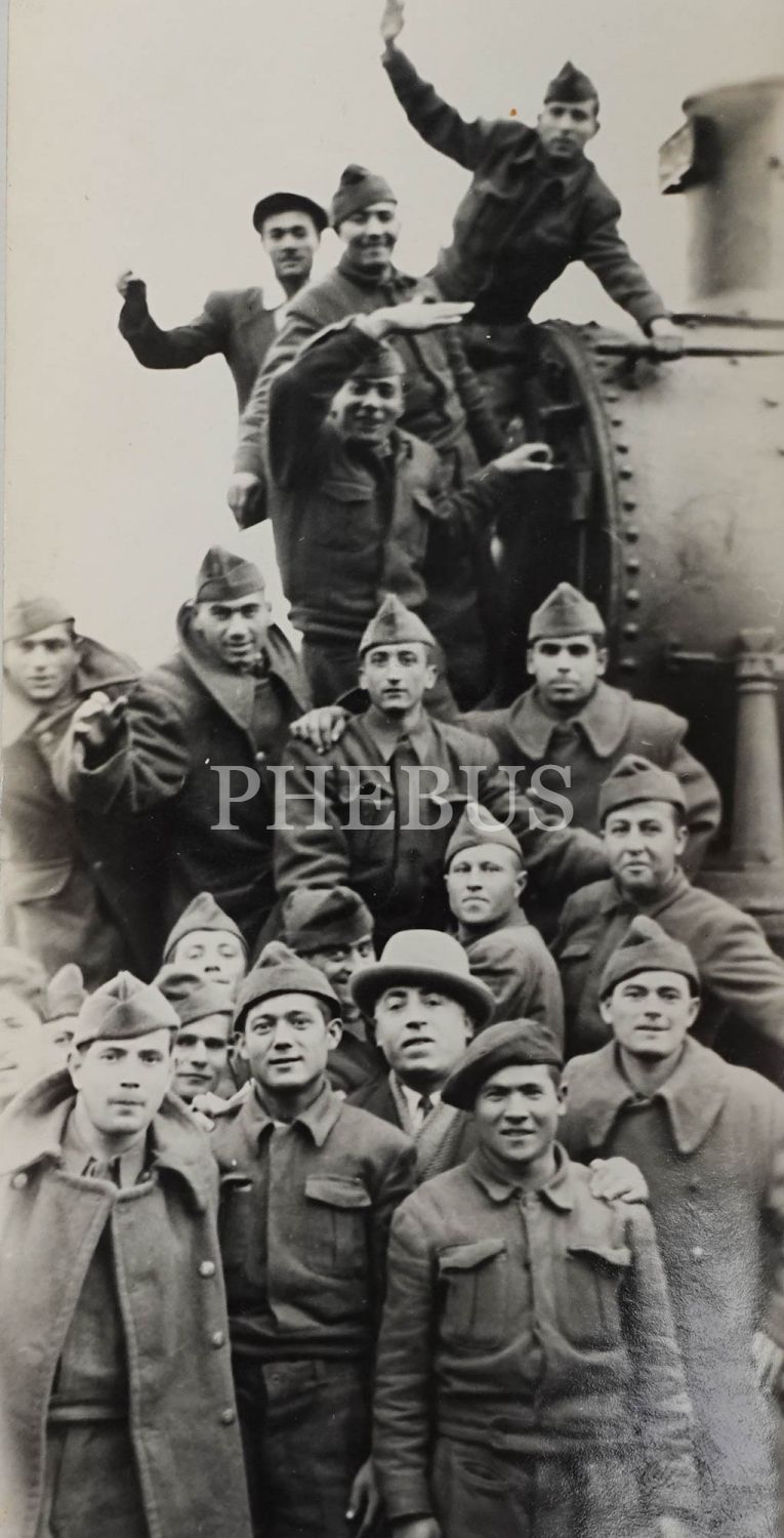 Trenle Kore´ye gönderilen "Şanlı Kore Tugayı" askerlerinin, Kütahya Tren İstasyonu´nda trenleri üzerinde çektirdikleri hatıra fotoğrafı, 16x8 cm...
