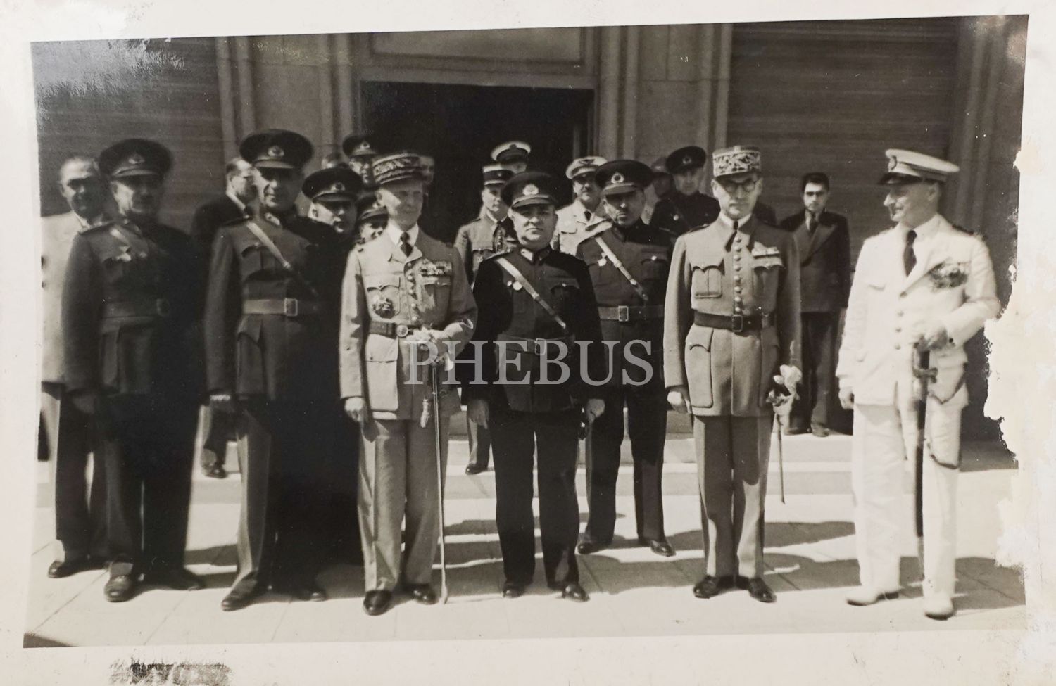 Hatay Sorunu´nun kilit isimlerinden olan Fransız general Charles Huntziger´in Türkiye ziyaretinden, Türk subaylarla birlikte görüldüğü iki adet fotoğraf, 19x12 cm...