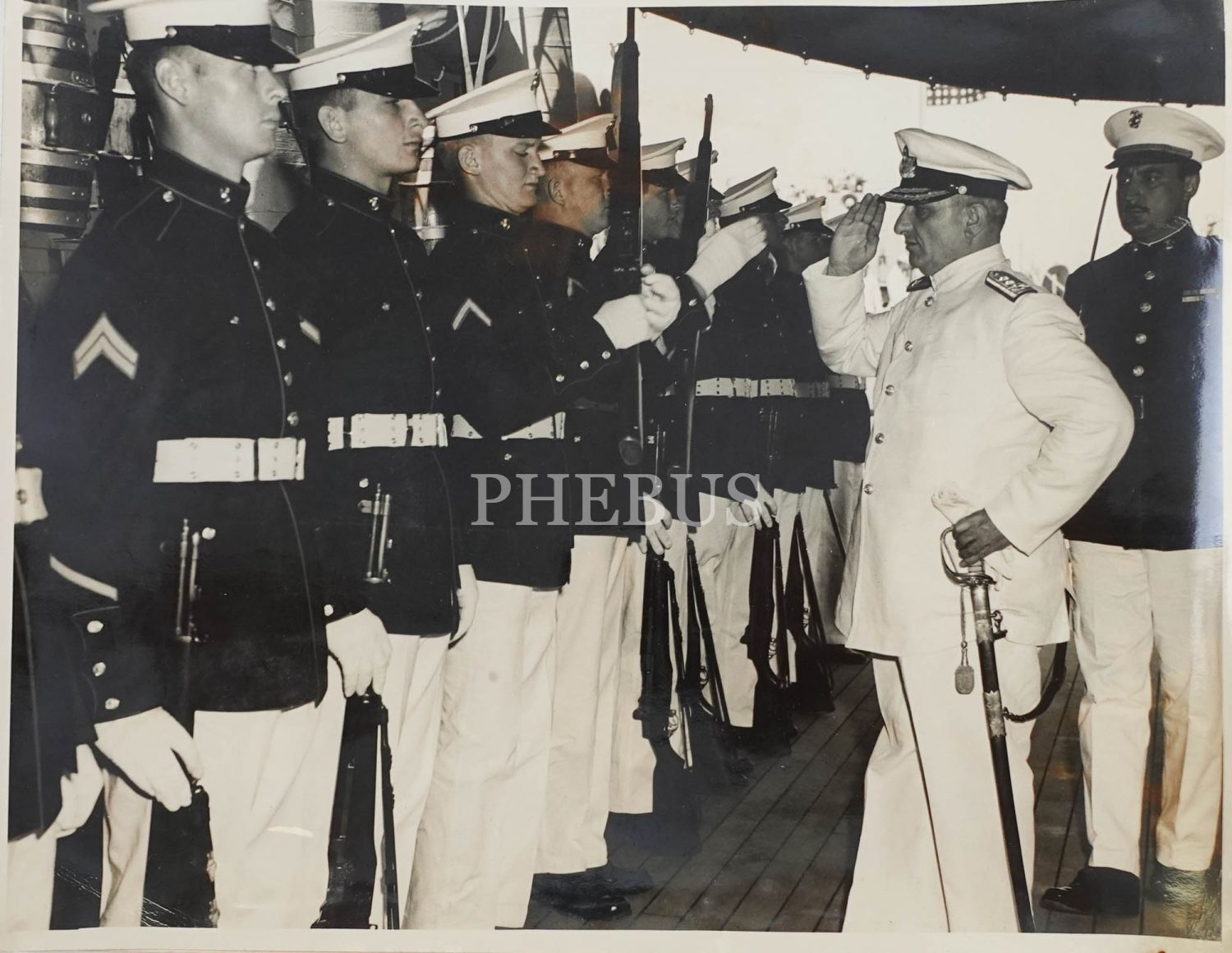 "Donanma Komutanı Vis Amiral Rıdvan Koral, Amerikan Altıncı Filo Komutanı Amiral John Jennings Ballentine´ın forsunu taşıyan USS Salem´de bir ihtiram kıtasını teftiş ediyor", 23x18 cm...