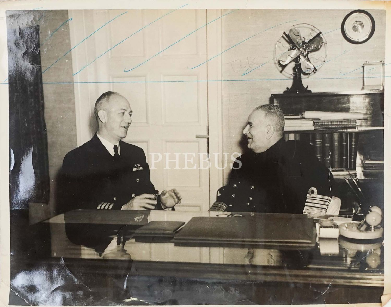Türkiye´ye Amerikan Yardımı Heyeti Deniz Grubu Başkanı Miralay Joseph Caldwell Huske, Amiral Mehmet Ali Ülgen´le vedalaşırken, 26x20 cm...