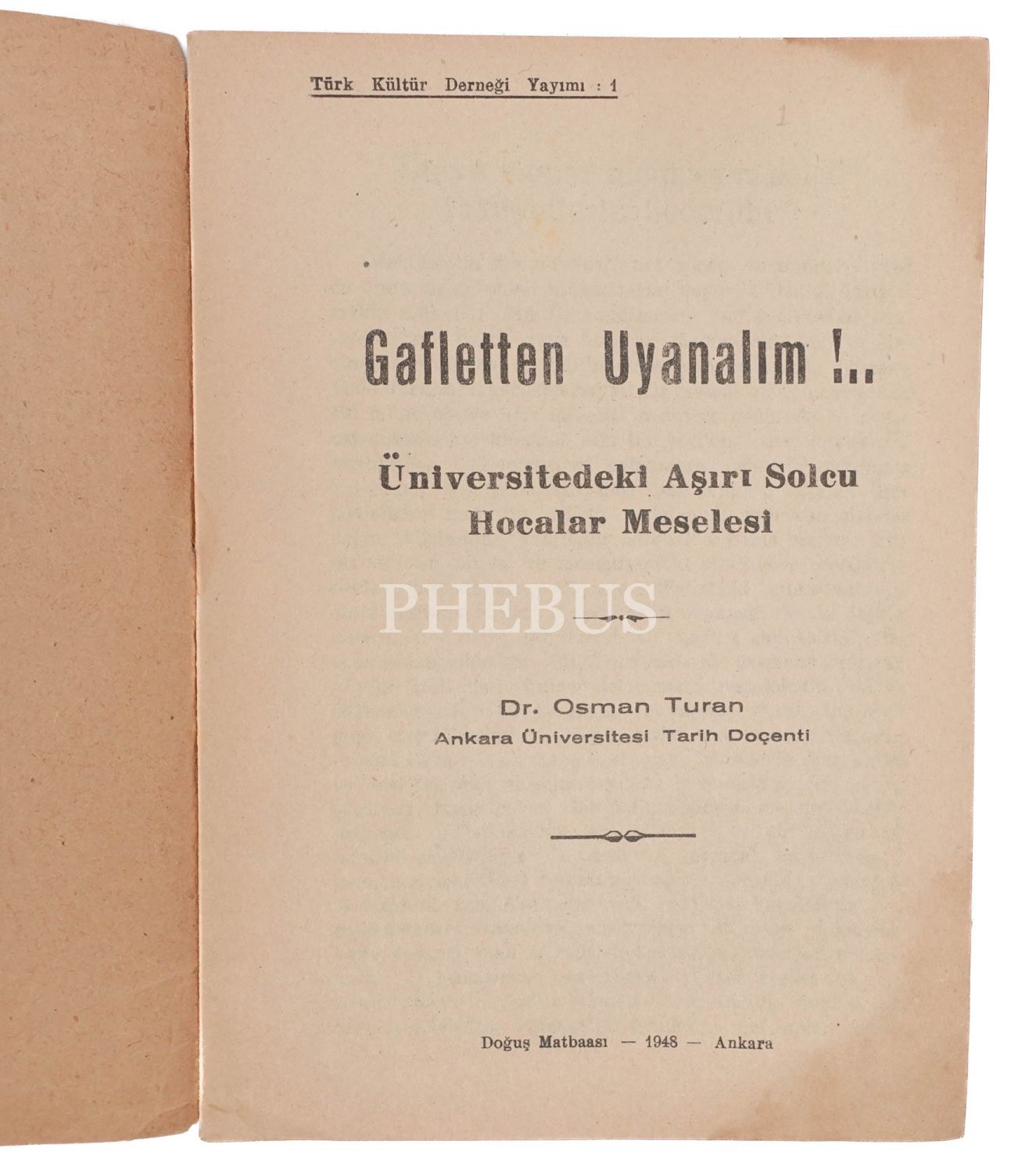 GAFLETTEN UYANALIM!..., Osman Turan, 1948, Doğuş Matbaası, 32 sayfa, 14x20 cm...