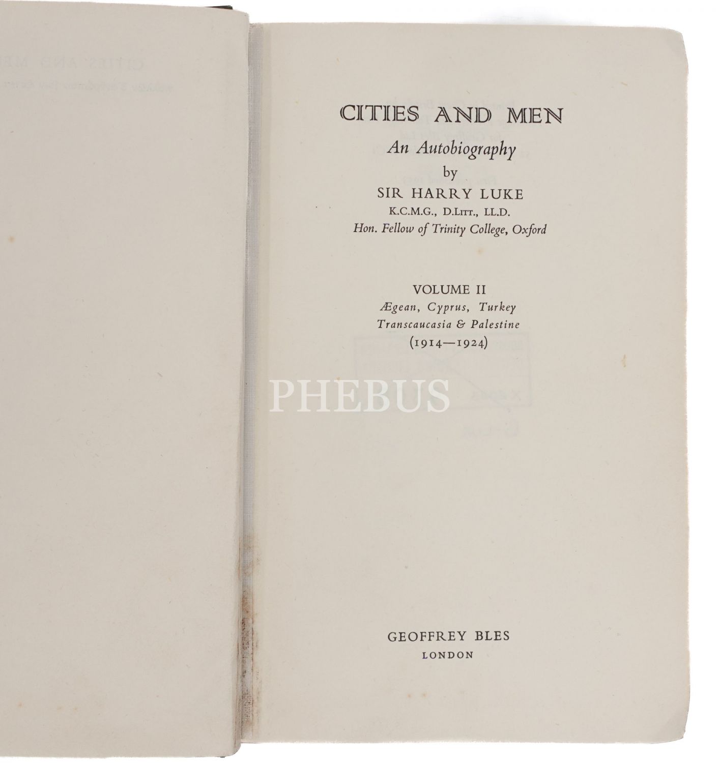CITIES AND MEN AN AUTOBIOGRAPHY, Sir Harry Luke, 1953, Geoffrey Bles (Londra), 262 sayfa, 14x22 cm...