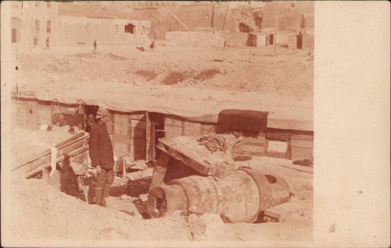 1. Cihan Harbi Çanakkale, Seddülbahir Kışlası'nda [Çanakkale] İngilizler tarafından dinamitle patlatılan toplardan biri, Şubat 1331 tarihli.