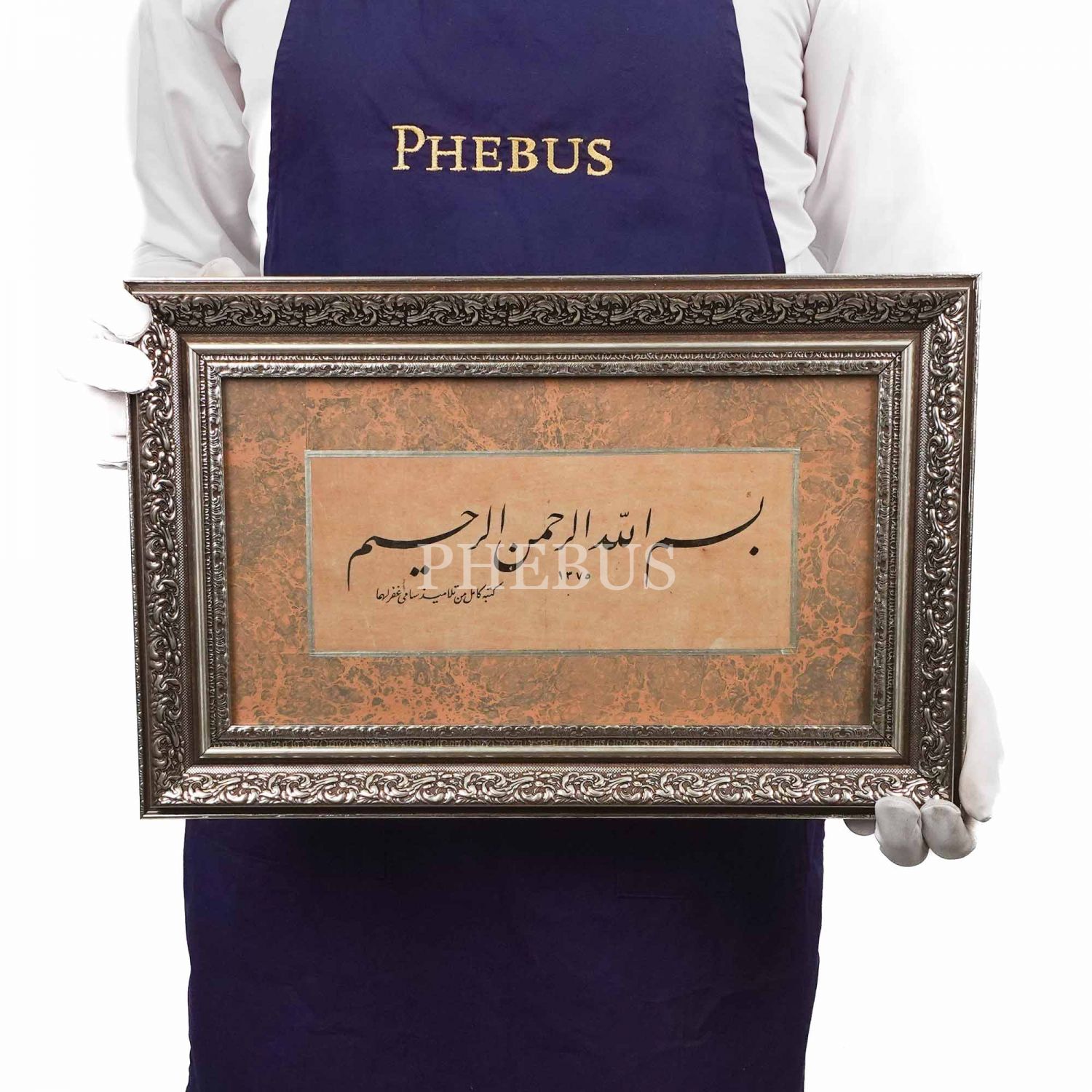Sami Efendi'nin talebesi Kamil Ülgen ketebeli talik besmele, 1375 tarihli, yazı ölçü: 26x10 cm, çerçeve: 45x30 cm...