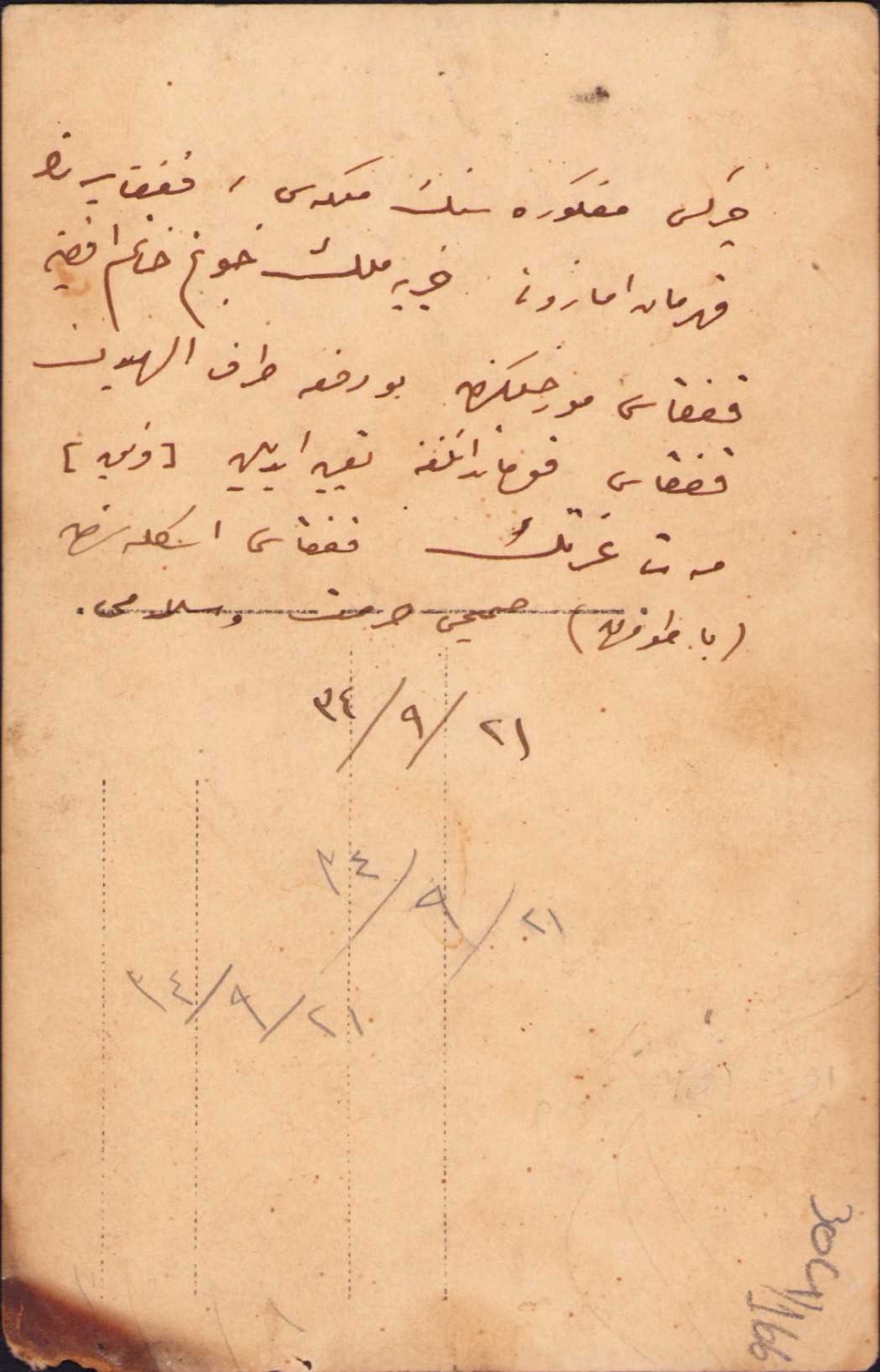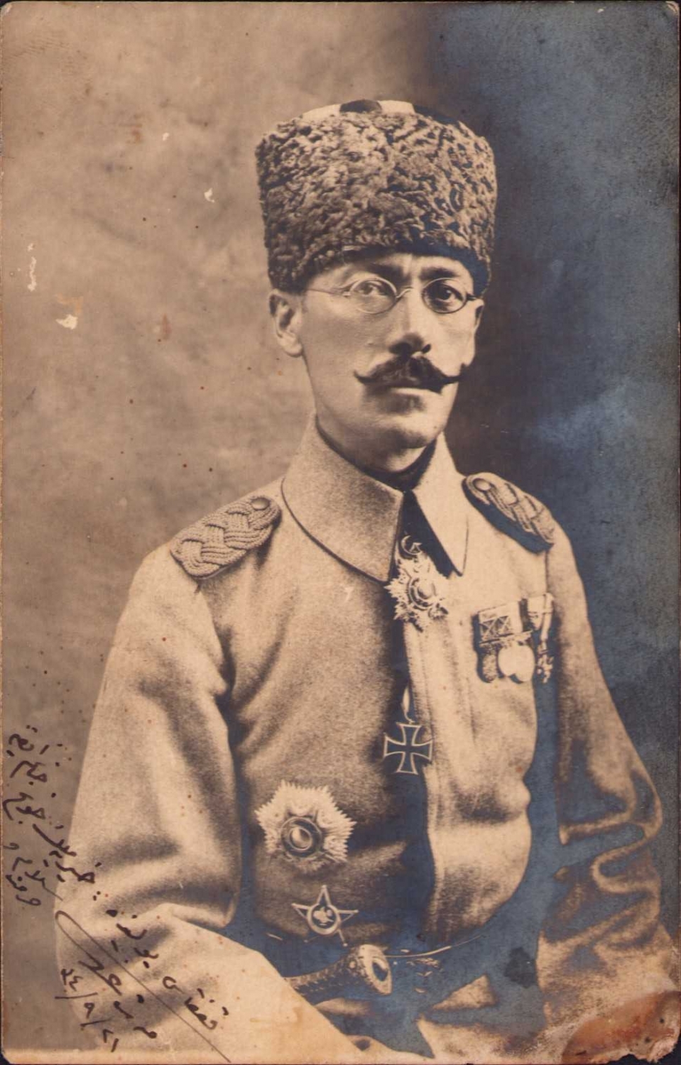 1. Cihan Harbi Çanakkale, Yusuf İzzet Paşa, Eşi Yazar Hayriye Melek Hunç'a Osmanlıca imzalı ve ithaflı, 1334 tarihli.