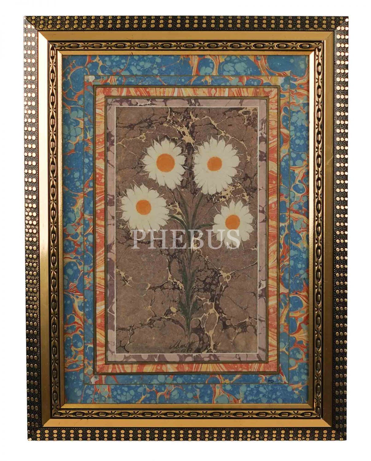 Mustafa Düzgünman imzalı lale ebrusu, ebru ölçü: 32x18 cm, çerçeve: 55x40 cm...