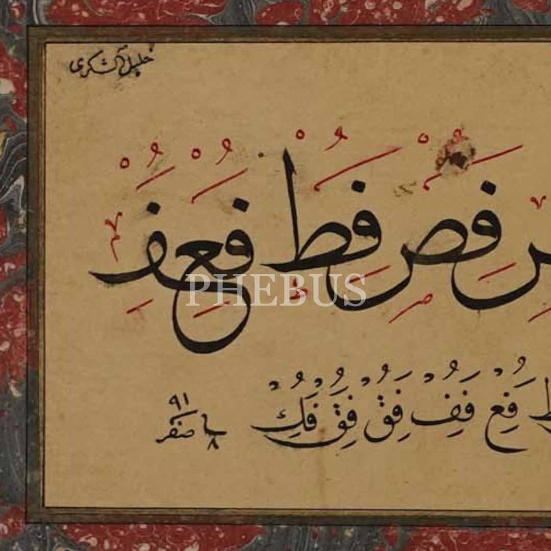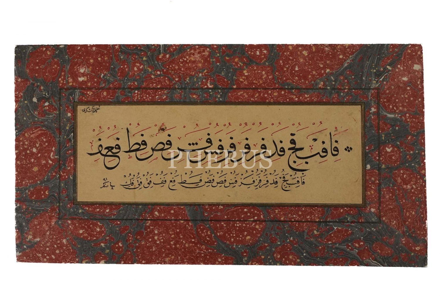Hocası tarafından Halil Şükri adlı talebesine verilmiş sülüs-nesih hurufat meşki, Safer (12)91 tarihli, 29x16 cm...