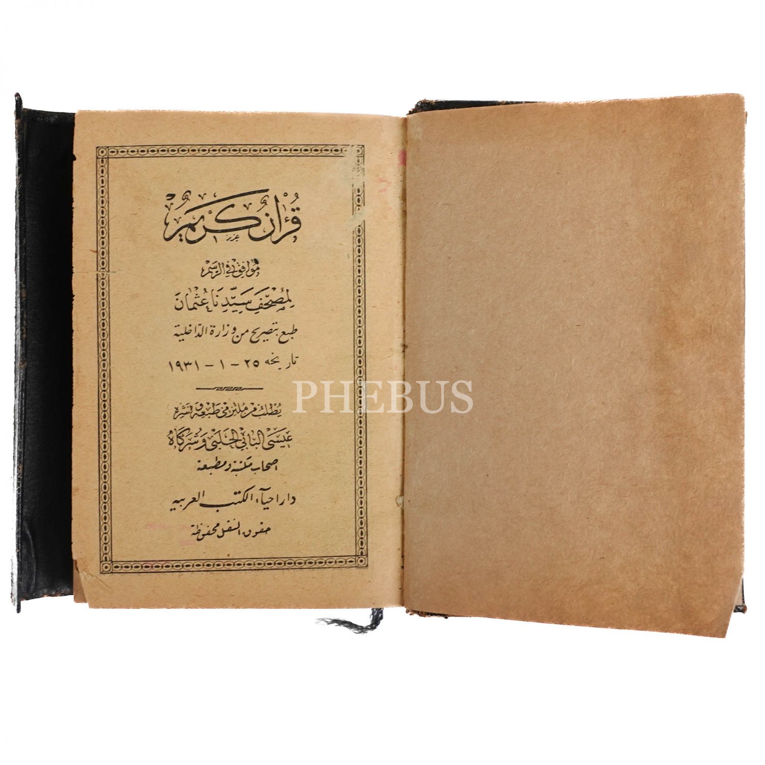 Mısır´da 1931 yılında basılmış taşbaskı Hafız Osman hattı Kuran-ı Kerim, 496 sayfa, 14x9 cm...