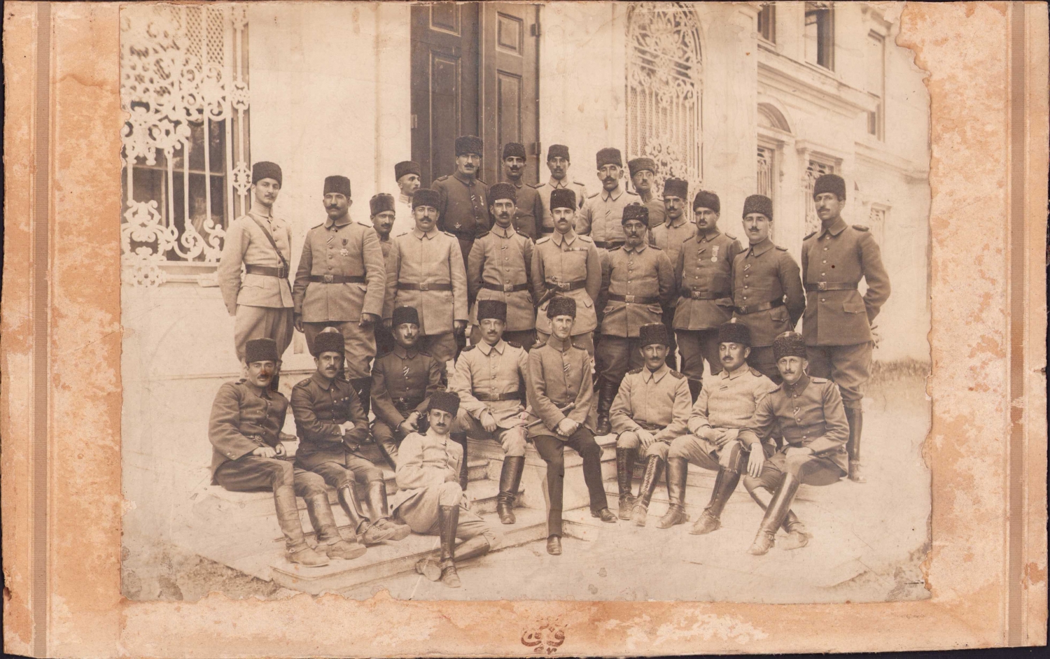 Enveriye kamalı Çanakkale madalyalı subaylar hatıra fotoğrafı.