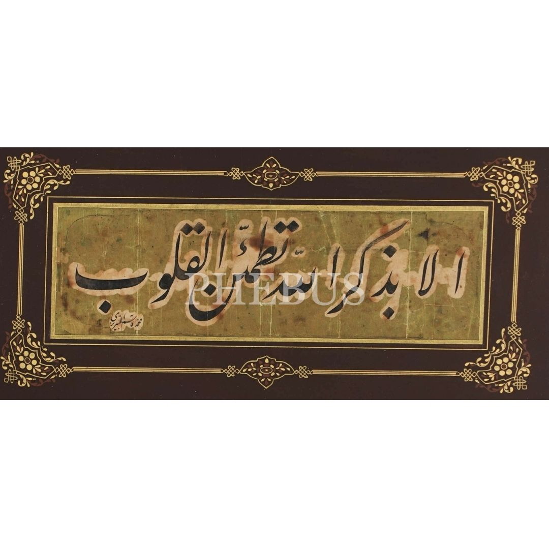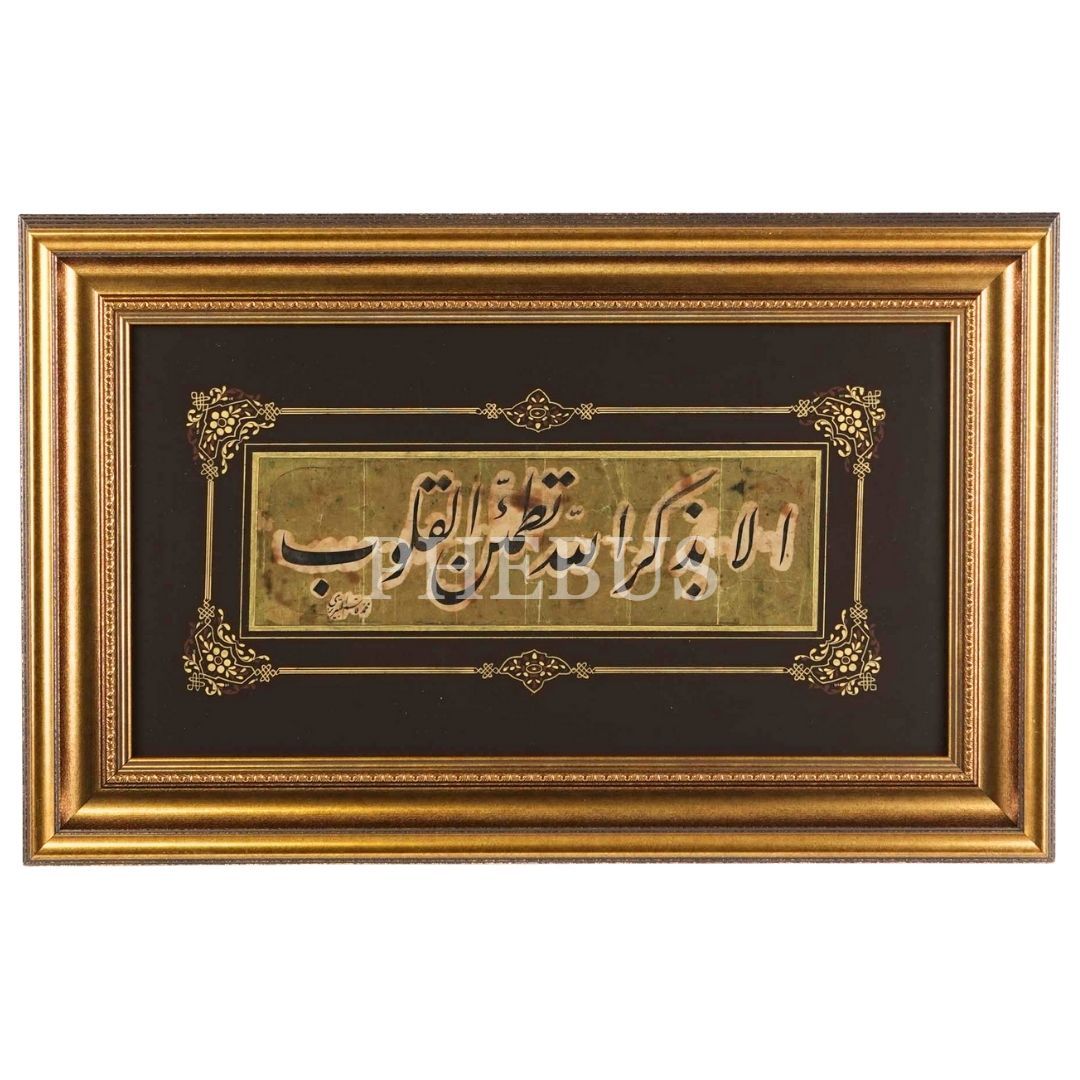 "Kalpler Ancak Allah´ı zikretmekler tatmin olur." anlamına gelen Hadis-i Şerif yazılıdır.