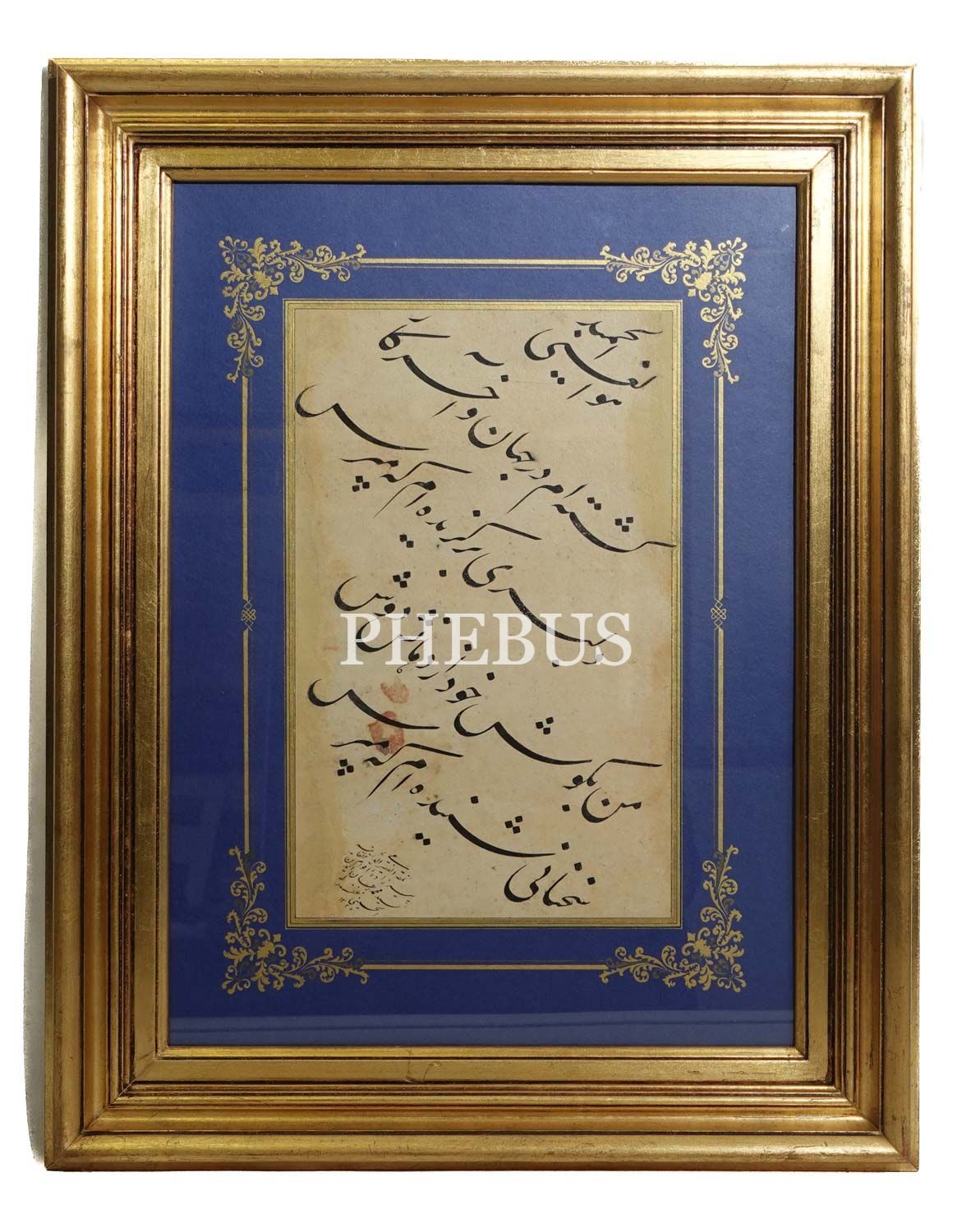 Burhaneddin Belhi ketebeli mail talik levha, 1325 tarihli, yazı ölçü: 31x23 cm, çerçeve ölçü: 65x52 cm...