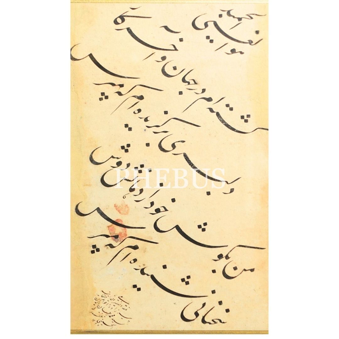 Seyyid Burhâneddin Belhî, 1849’da Belh’te dünyaya gelmiş, soyu İmam Muhammed Takî yoluyla Hz. Muhammed(s.a.v.)’e ulaşan bir zattır. Babası Seyyid Süleyman Belhî, ağabeyi ise Hamzavî-Melâmî kutbu Seyyid Abdülkadir Belhî Efendi’dir. Mâhir bir hattât ve kuvvetli bir şair olan Burhâneddin Belhî; Arapça, Farsça ve Çağatayca dillerinde şiirler yazmıştır. Şiirlerinde genelde tasavvufi temalar işlemiştir. Bu lottaki eserde de muhtemelen kendisine ait olan farsça tasavvufi bir şiir yazılıdır. Üstte "Allah kimseye muhtaç olmayan ve bütün özgülere layık olandır" anlamında "Hüve´l-ganiyyü´l-hamîd" yazmaktadır. Alt köşede Burhaneddin Belhi Efendi "Pirzade Seyyid Burhaneddin el-Hüseyni" şeklinde ketebe yazmıştır.
