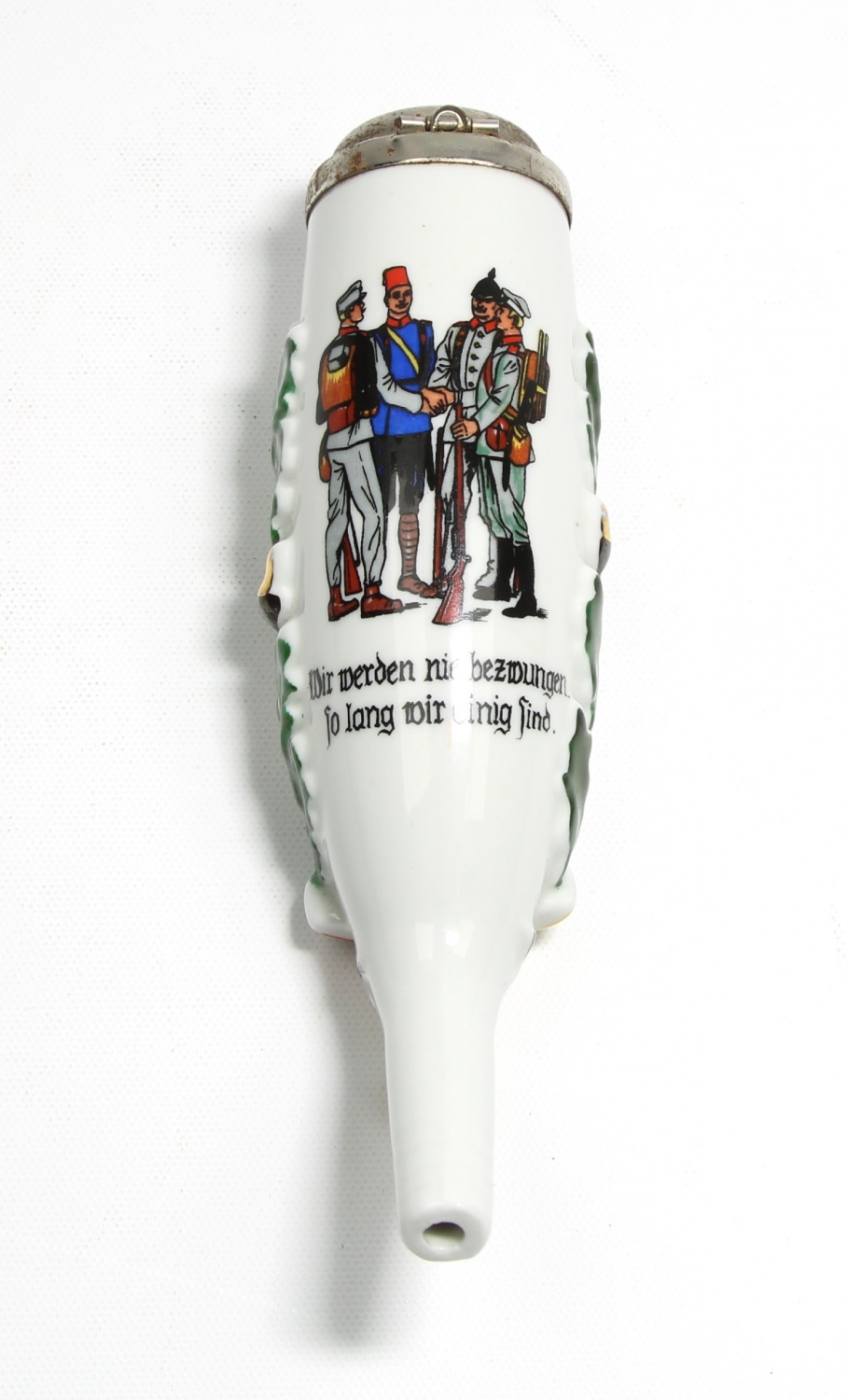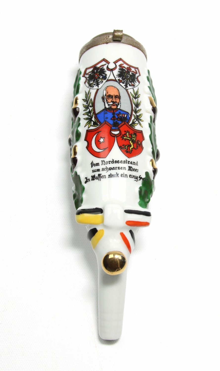 Alman Kralı I. Wilhelm görselli, Osmanlı ve Almanya ittifakı temalı pipo, ay-yıldız bayraklı ve Alman imparatorluğu armalı, 4,5x16 cm.