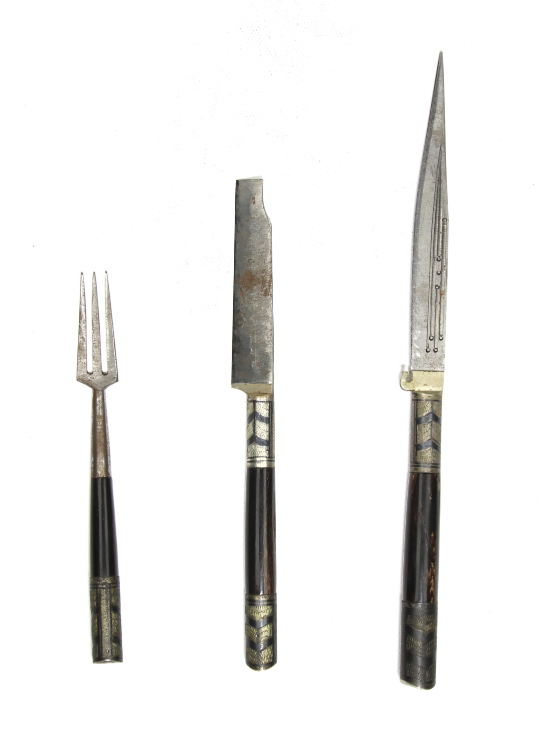 Deri kılıfında Sürmene seti, savatlı, üç parça, 20 cm.