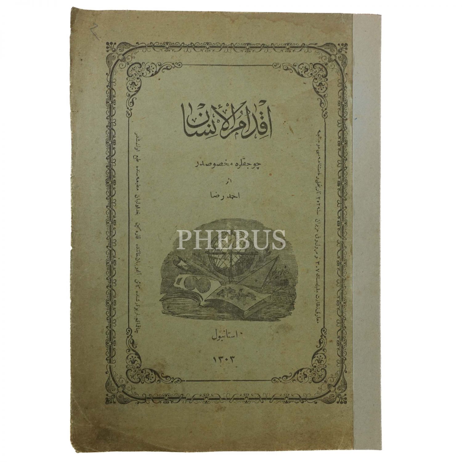 İKDAMÜ´L-İNSAN, Ahmed Rıza, 1303, Karakin Bağdadliyan Matbaası, 20 sayfa, 14x20 cm...