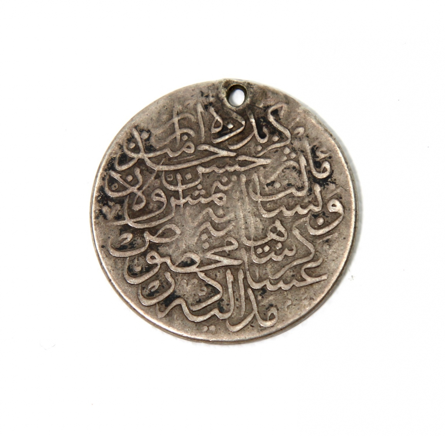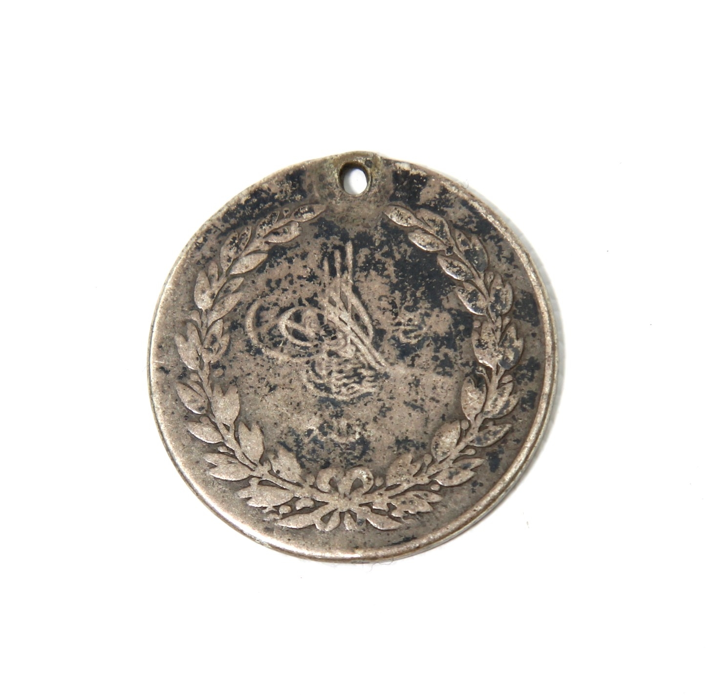 Osmanlı dönemi Cedid Girit Madalyası, 1890 tarihli, II. Abdülhamid tuğralı, Üzerinde 'Girid'de ibraz-ı me'asir-i hüsn-i hidmet ve besalet etmiş olan Asakir-i Şahaneye mahsus madalyadır' yazılı, 2,5 cm.