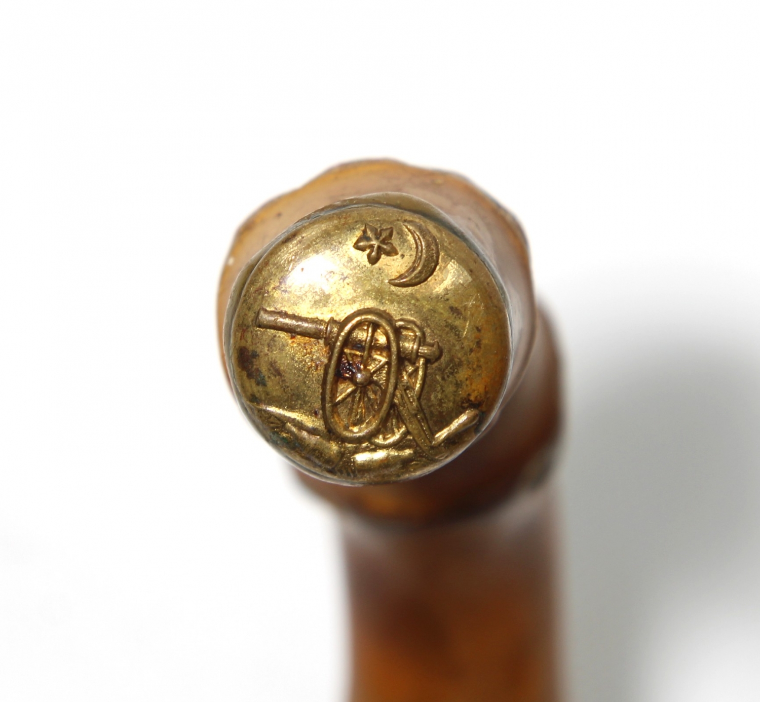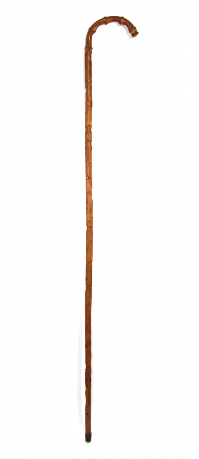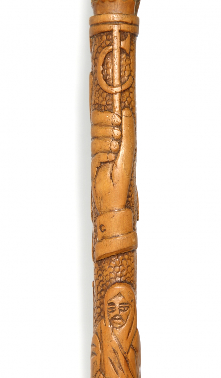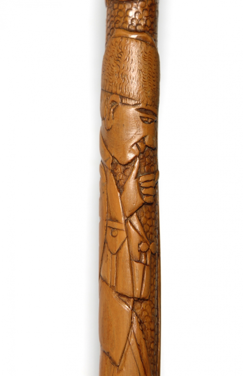 Üzerinde Atatürk, Fatih ve bazı hükümdar tasvirleri oyulmuş erken dönem ahşap baston, 93 cm.
