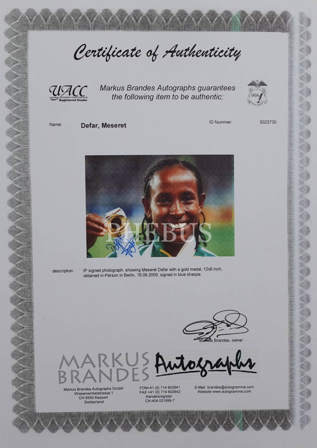 Olimpiyat atleti Defar Meseret´in imzalı ve sertifikalı fotoğrafı, 21x25 cm....