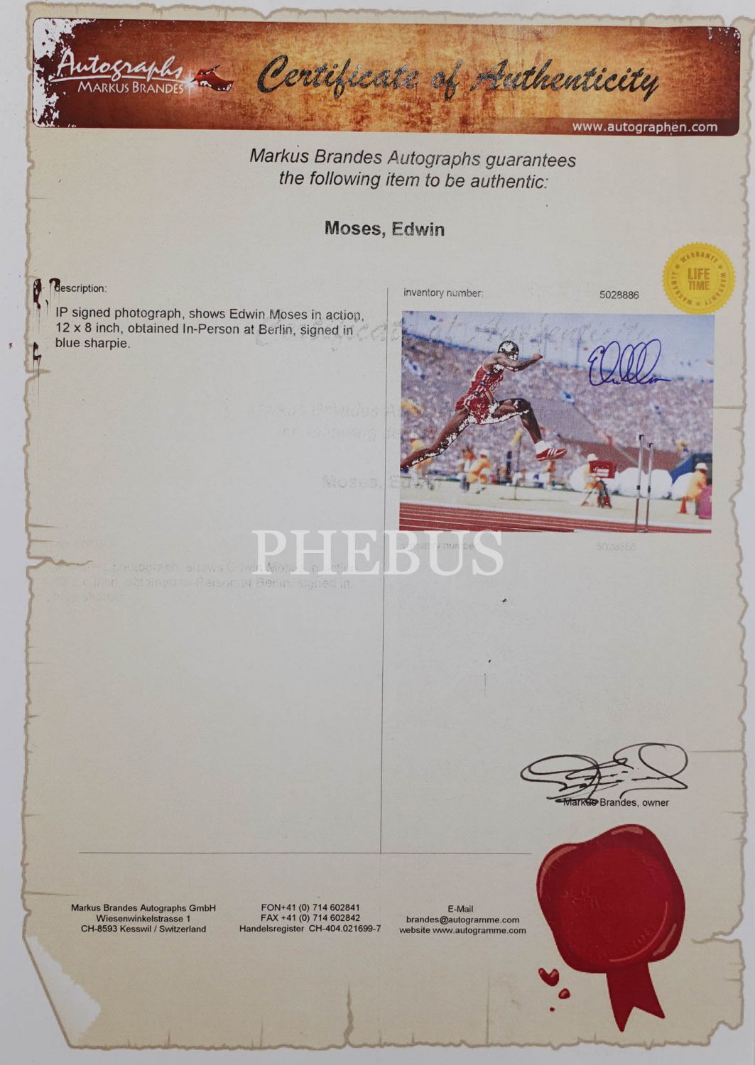 Olimpiyat atleti Moses Edwin´in imzalı ve sertifikalı fotoğrafı, 21x25 cm....