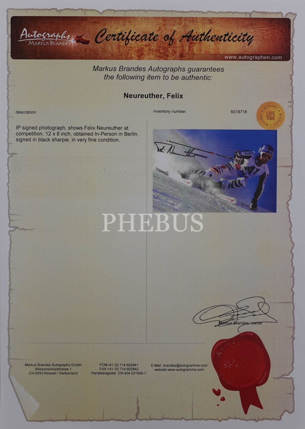 Kayak yarışçısı Felix Neureuther´in imzalı ve sertifikalı fotoğrafı, 21x25 cm....