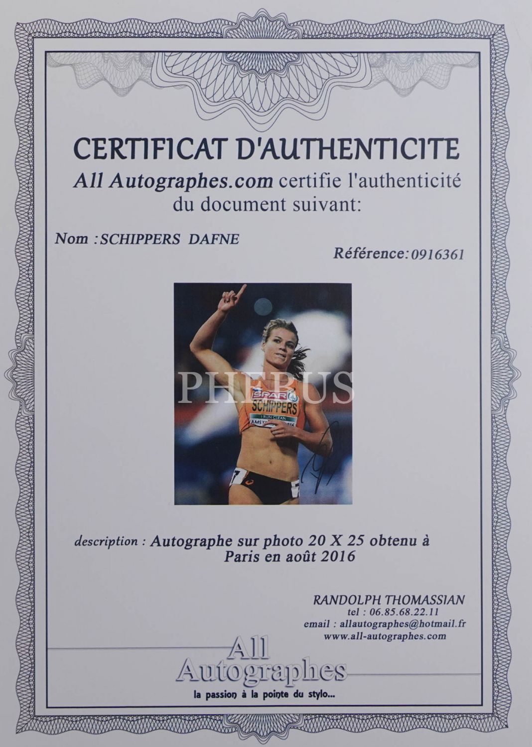 Olimpiyat atleti Dafne Schippers´in imzalı ve sertifikalı fotoğrafı, 21x25 cm....
