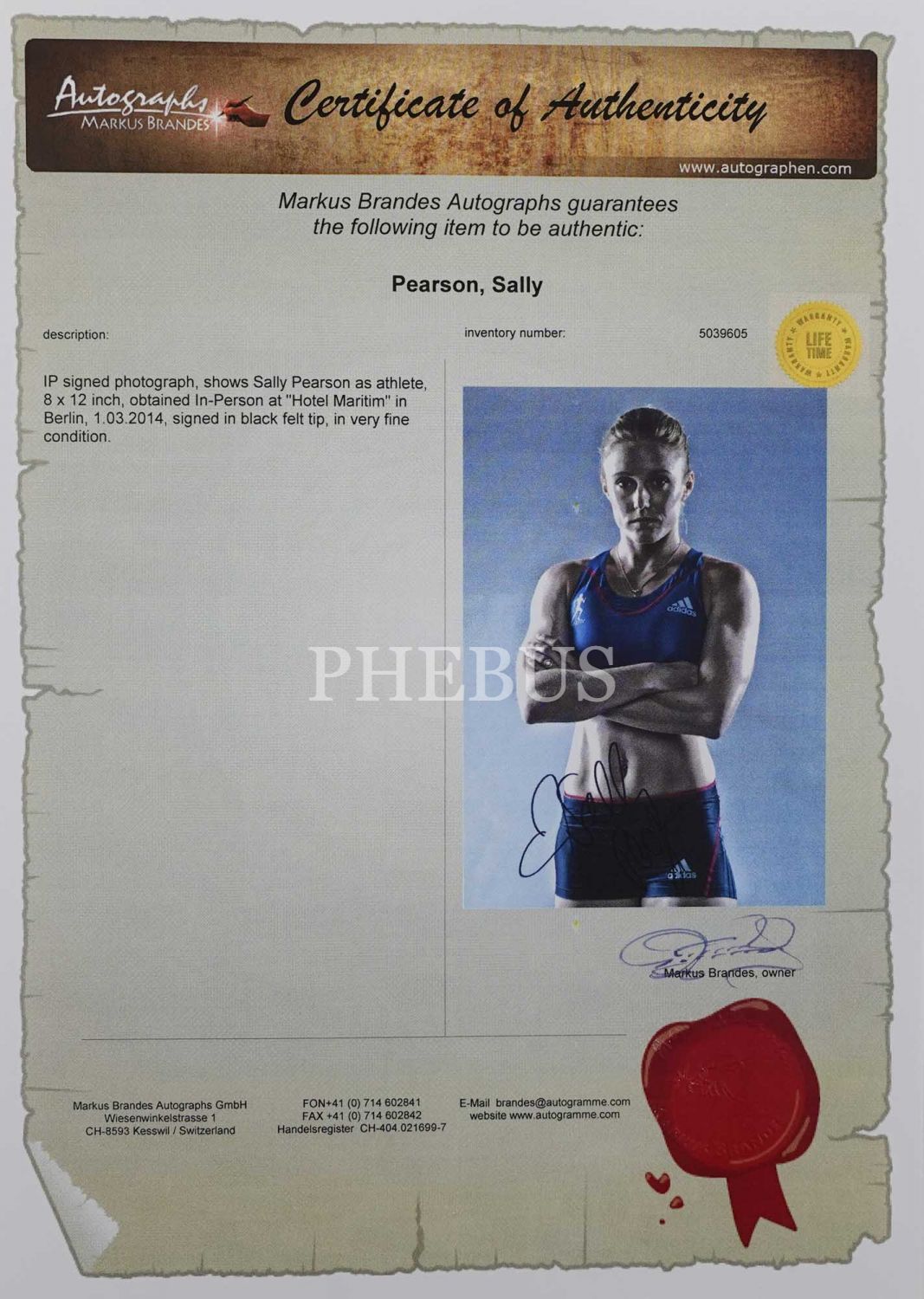 Yüzücü Sally Pearson´ın imzalı ve sertifikalı fotoğrafı, 21x25 cm....