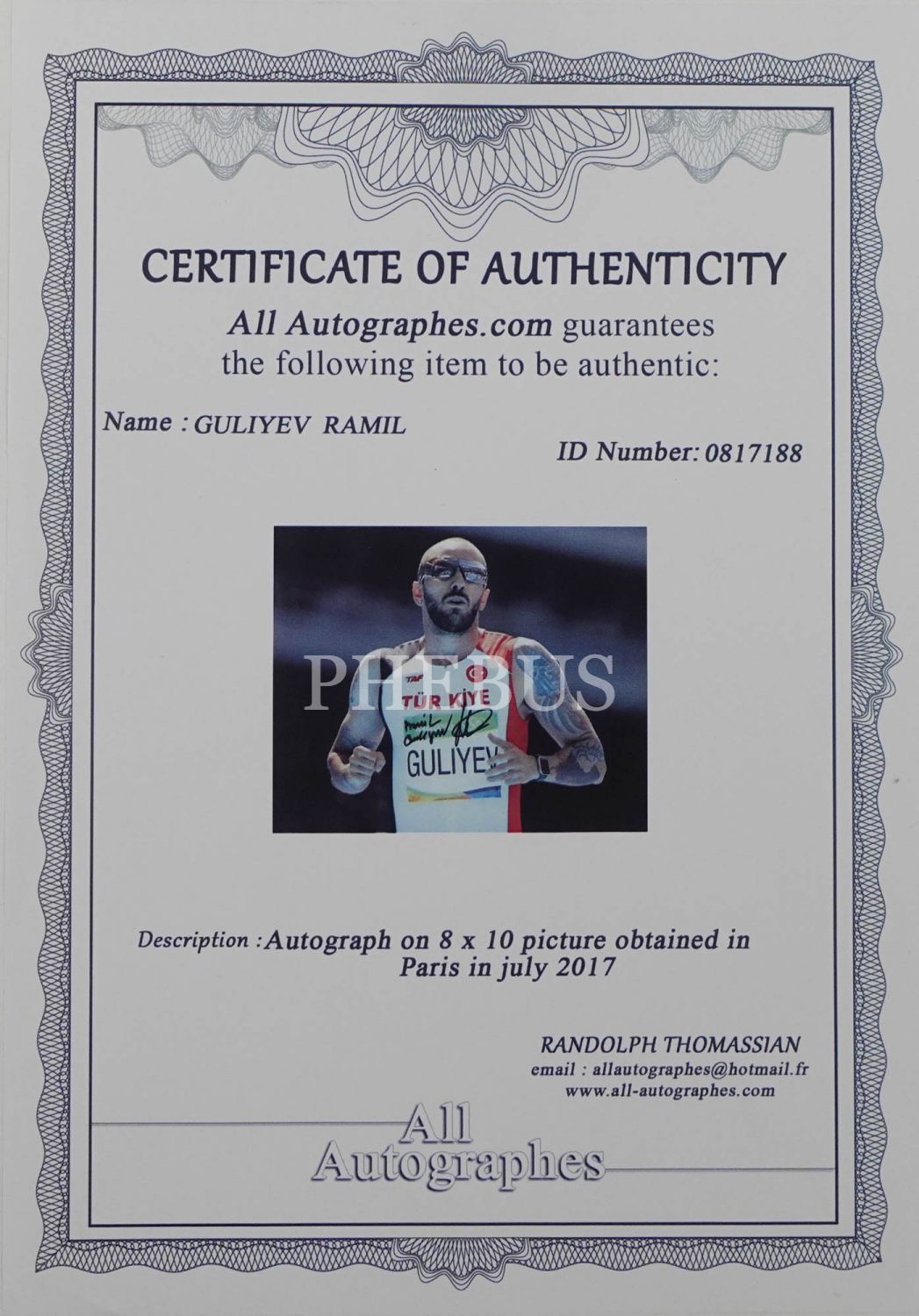 Milli Olimpiyat atletimiz Ramil Guliyev´in imzalı ve sertifikalı fotoğrafı, 21x25 cm....
