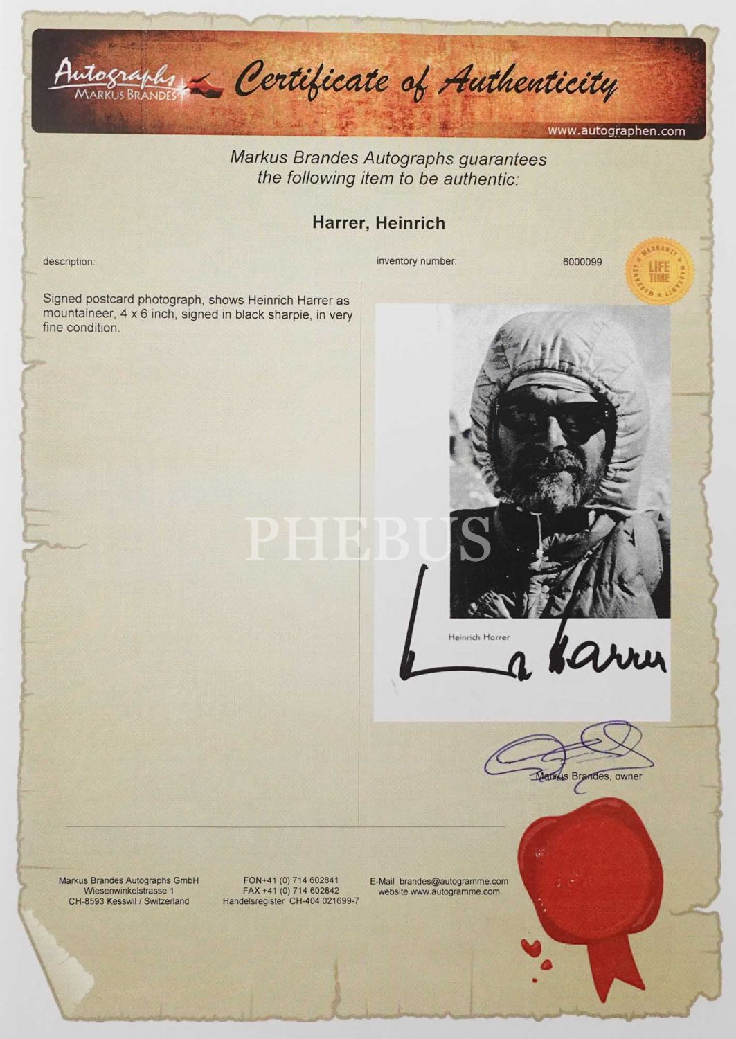Dağcı ve kaşif Heinrich Harrer´ın imzalı ve sertifikalı fotoğrafı, 10x15 cm...