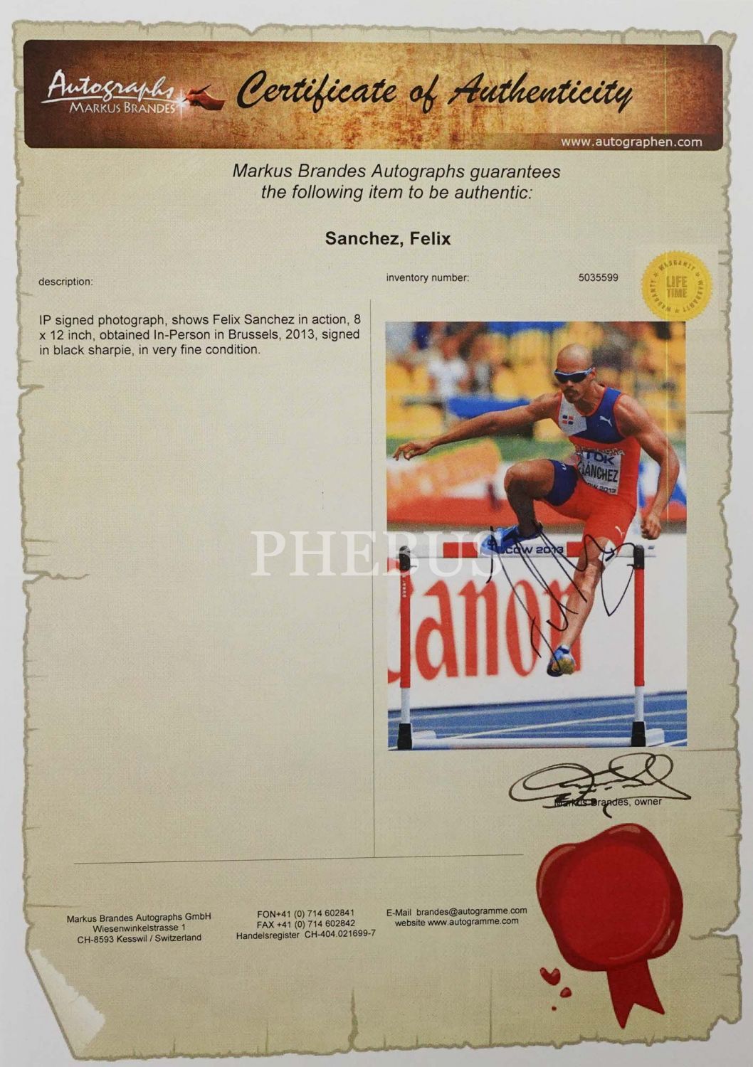Olimpiyat atleti Felix Sanchez´in imzalı ve sertifikalı fotoğrafı, 21x25 cm....