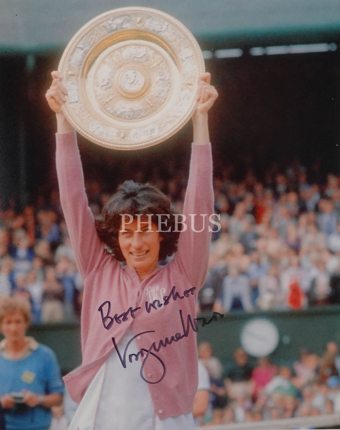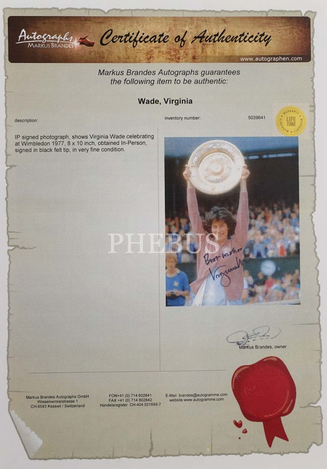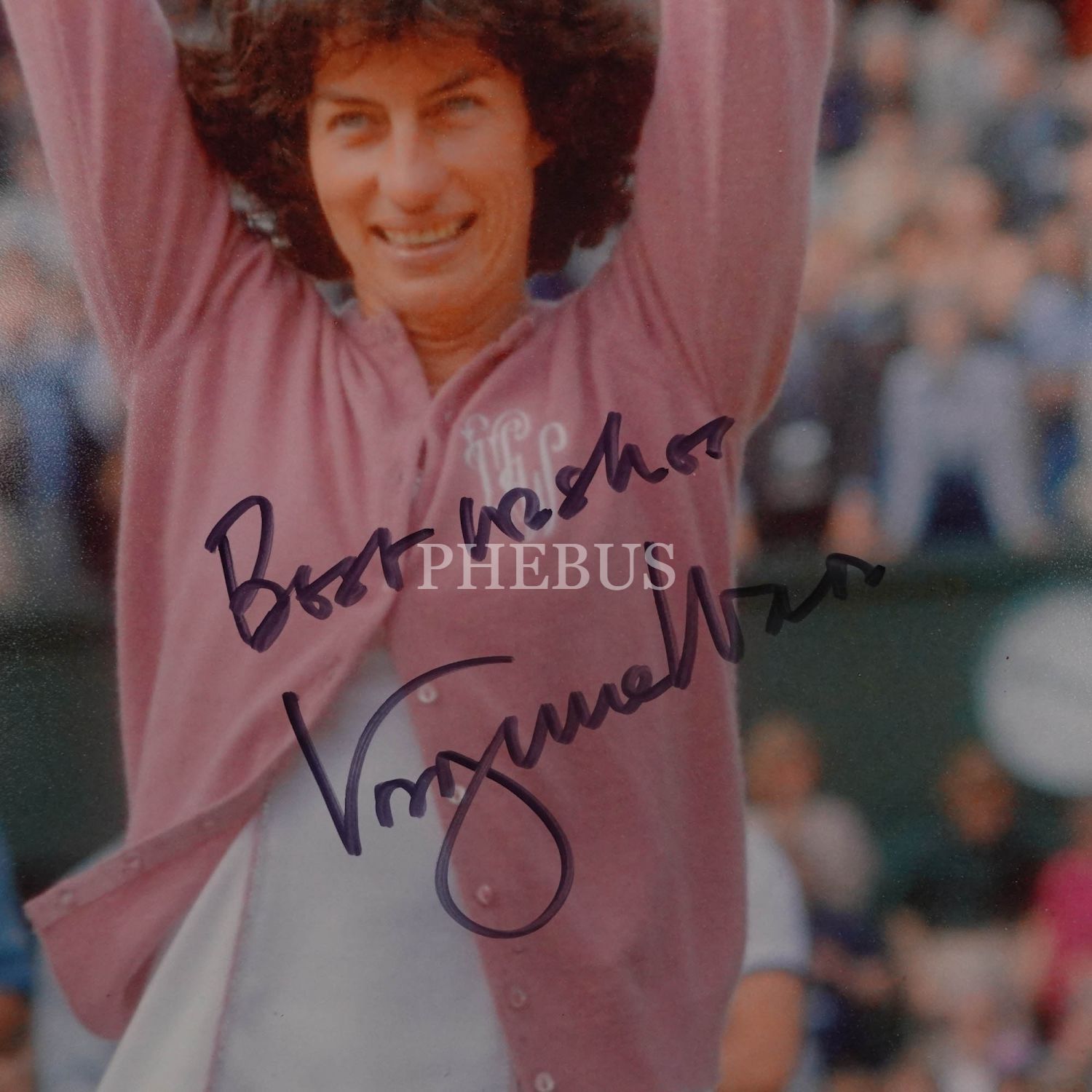 Tenisçi Virginia Wade´in imzalı ve sertifikalı fotoğrafı, 21x25 cm....