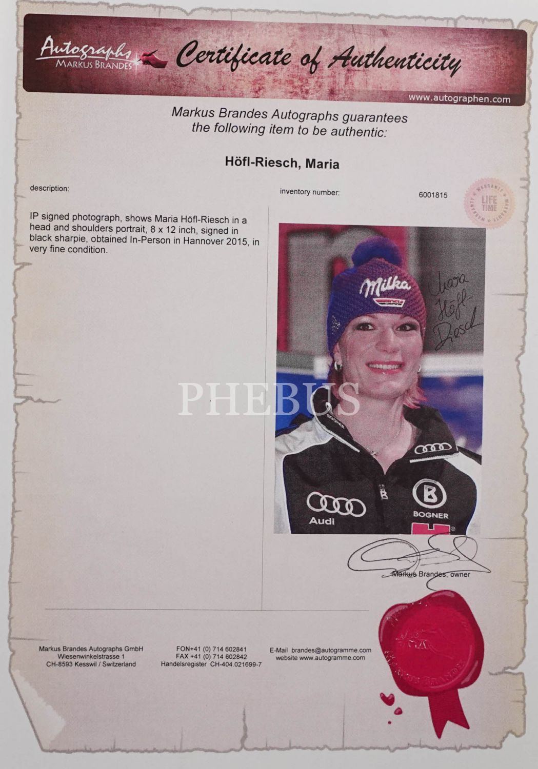 Olimpiyat atleti Maria Höfl-Riesch´in imzalı ve sertifikalı fotoğrafı, 21x25 cm....