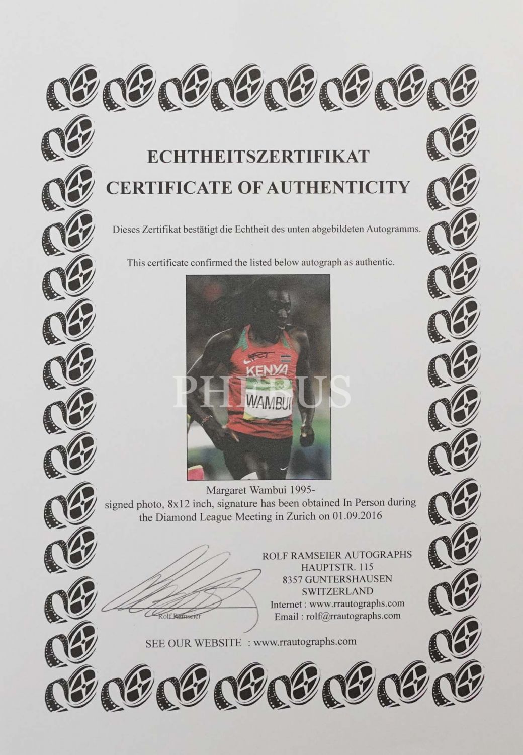 Olimpiyat atleti Wambui Margaret´in imzalı ve sertifikalı fotoğrafı, 21x25 cm....