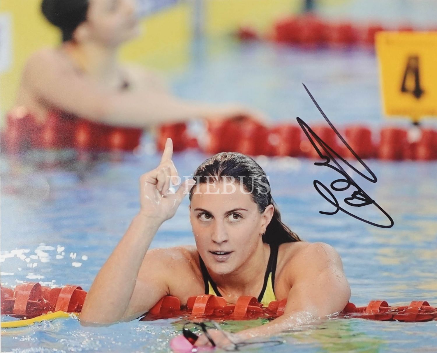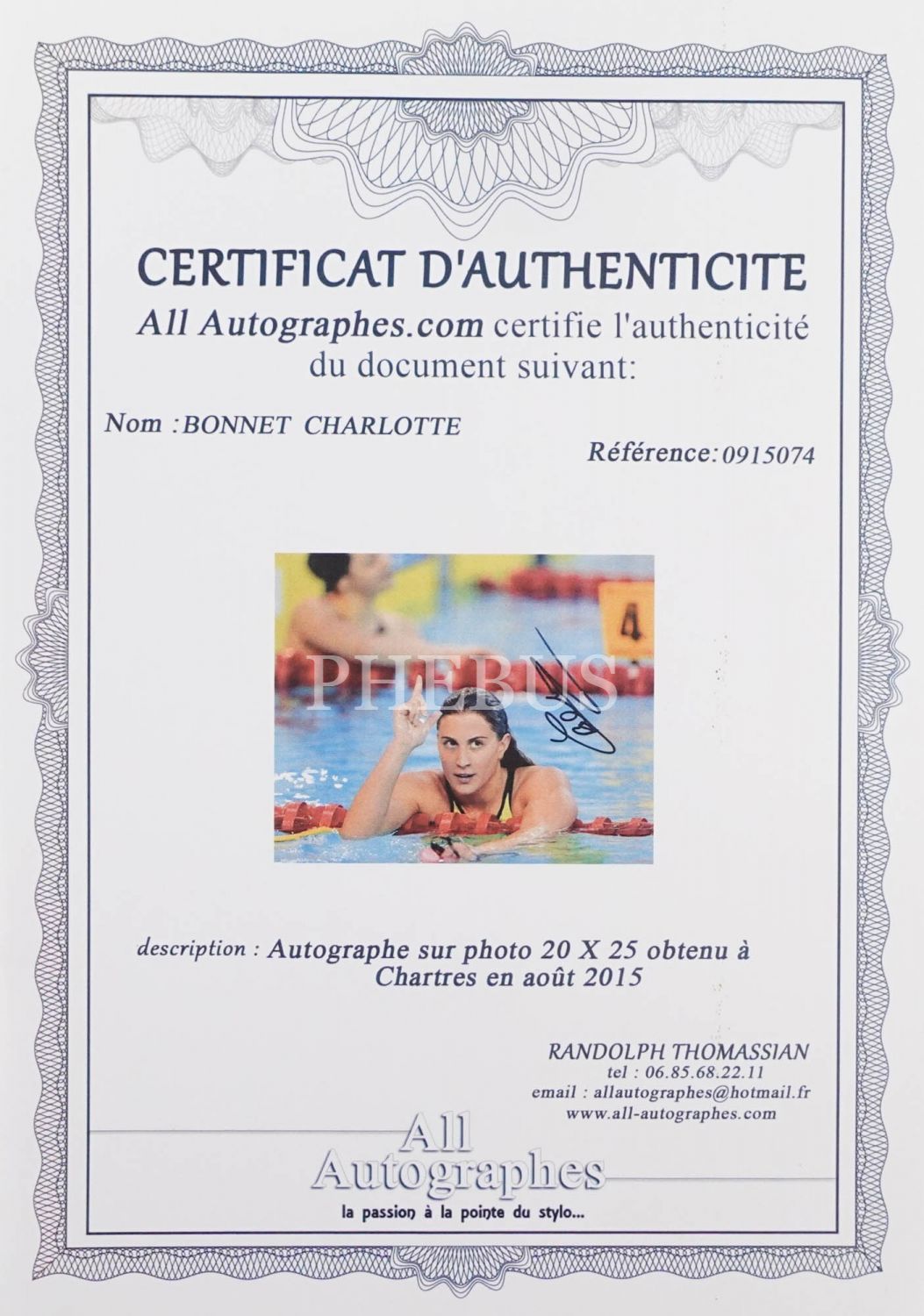 Yüzücü Charlotte Bonnet´in imzalı ve sertifikalı fotoğrafı, 21x25 cm....