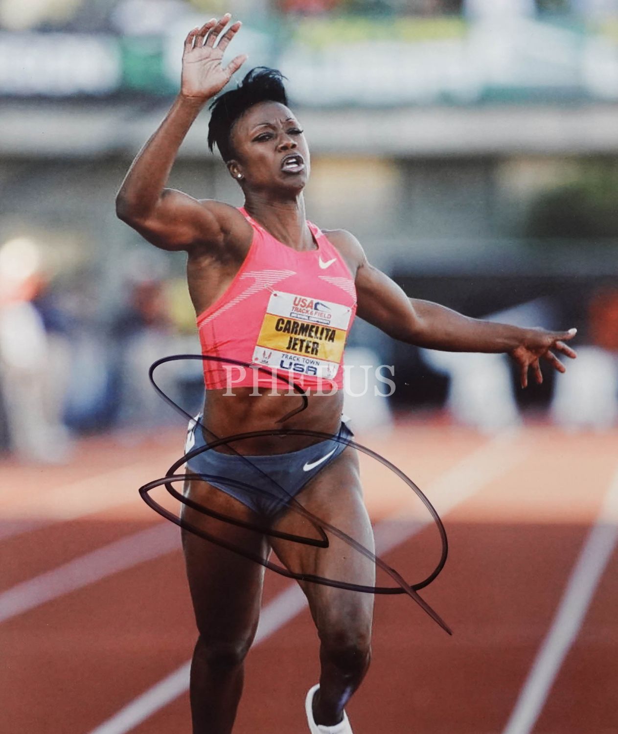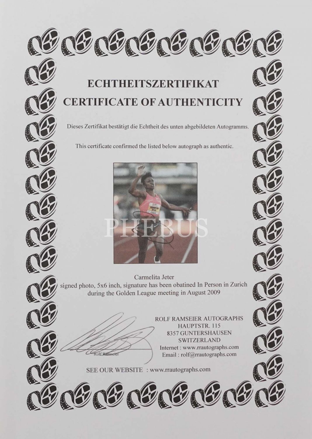 Olimpiyat atleti Jeter Carmelita´nın imzalı ve sertifikalı fotoğrafı, 13x15 cm...
