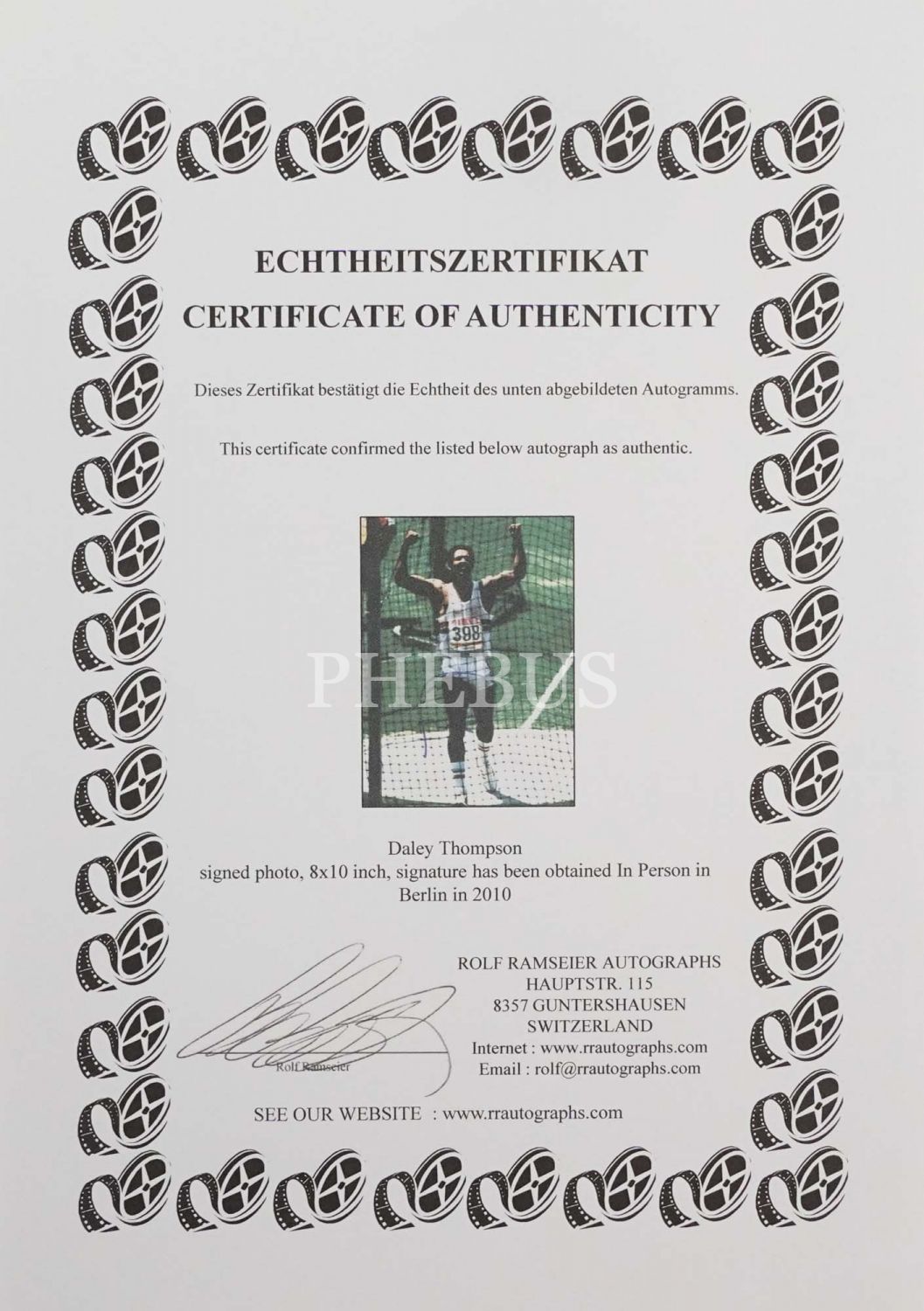 Olimpiyat atleti Thompson Daley´in imzalı ve sertifikalı fotoğrafı, 21x25 cm....