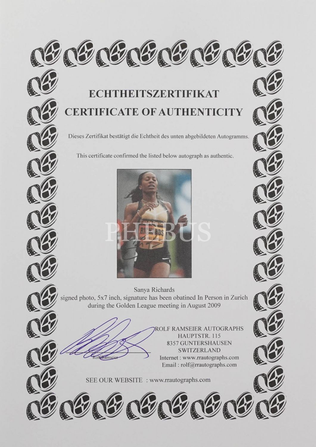 Olimpiyat atleti Sanya Richards´ın imzalı ve sertifikalı fotoğrafı, 13x19 cm...