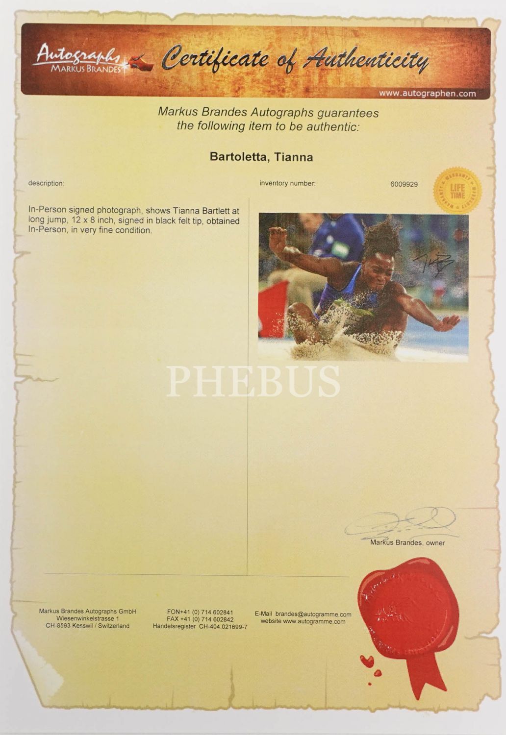 Olimpiyat atleti Tianna Bartoletta´nın imzalı ve sertifikalı fotoğrafı, 21x25 cm....