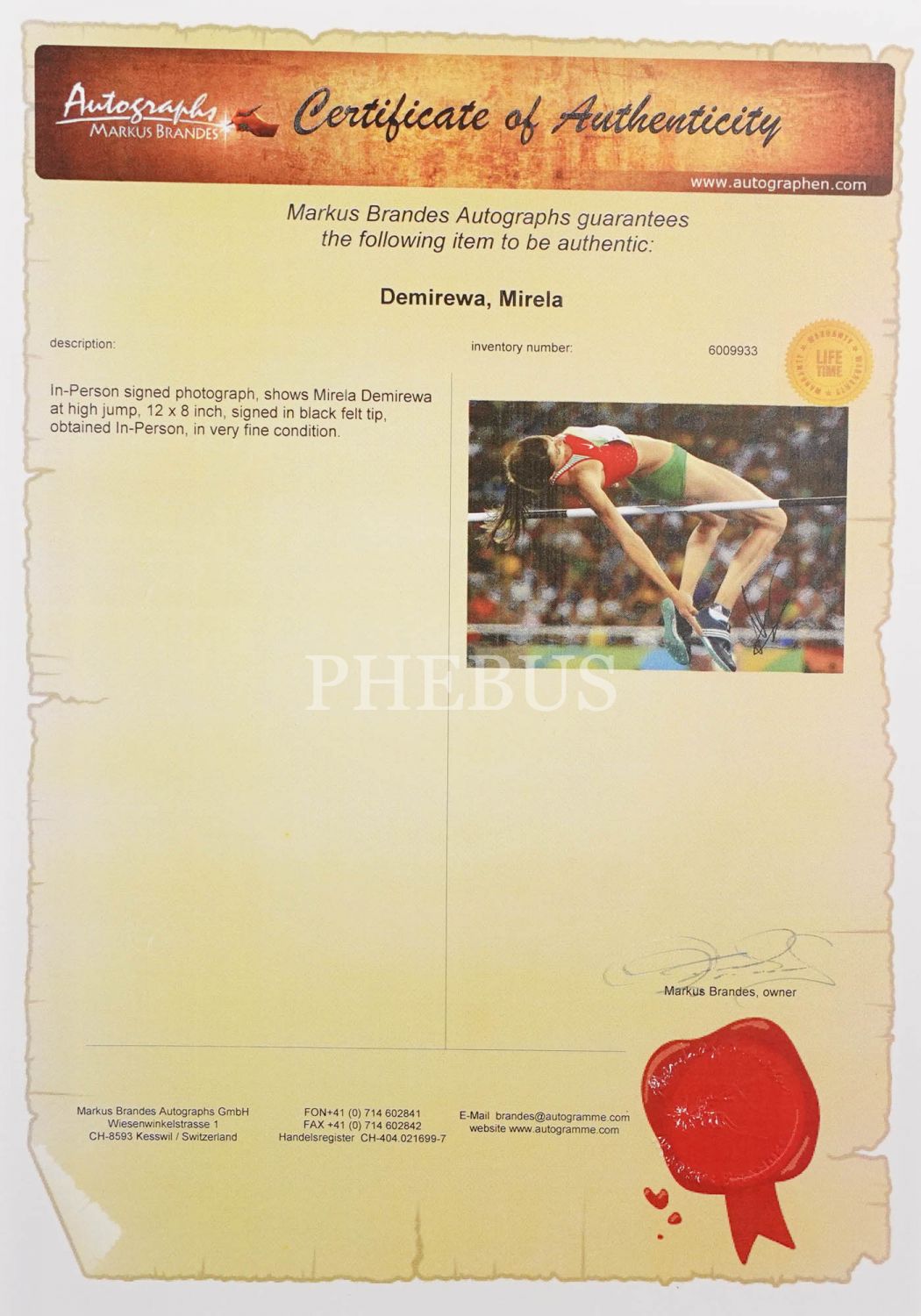 Olimpiyat atleti Mirela Demirewa´nın imzalı ve sertifikalı fotoğrafı, 21x25 cm....