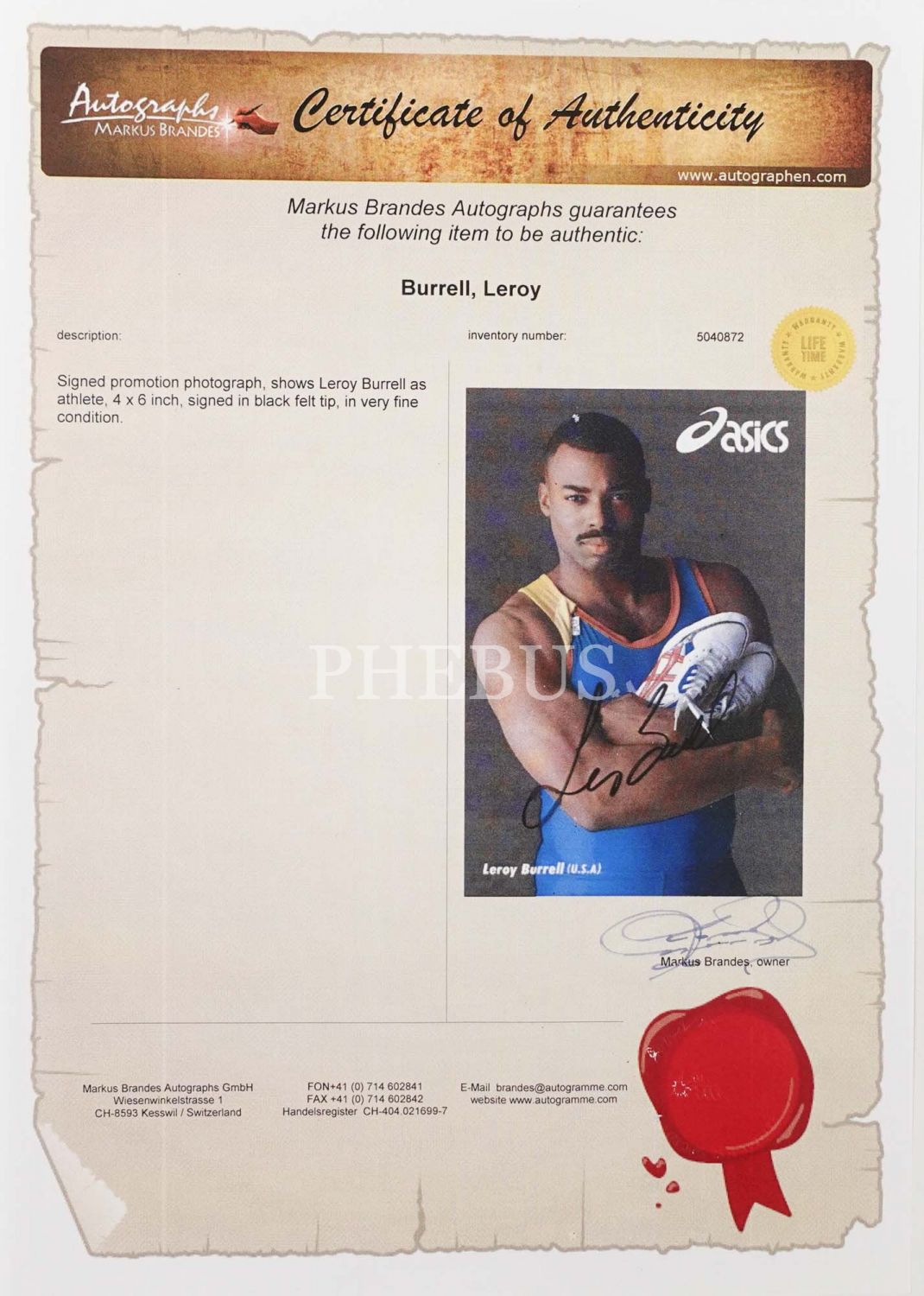 Olimpiyat atleti Leroy Burrel´in imzalı ve sertifikalı fotoğrafı, 10x15 cm...