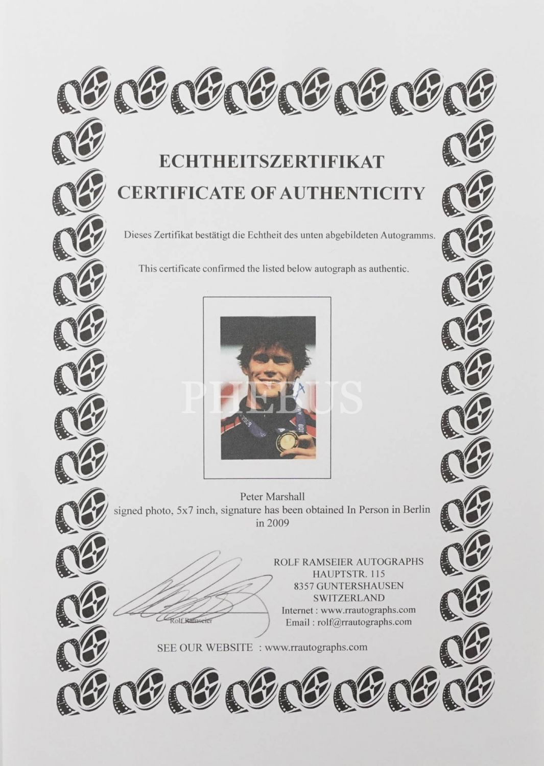 Olimpiyat atleti Peter Marshall´ın imzalı ve sertifikalı fotoğrafı, 13x18 cm....