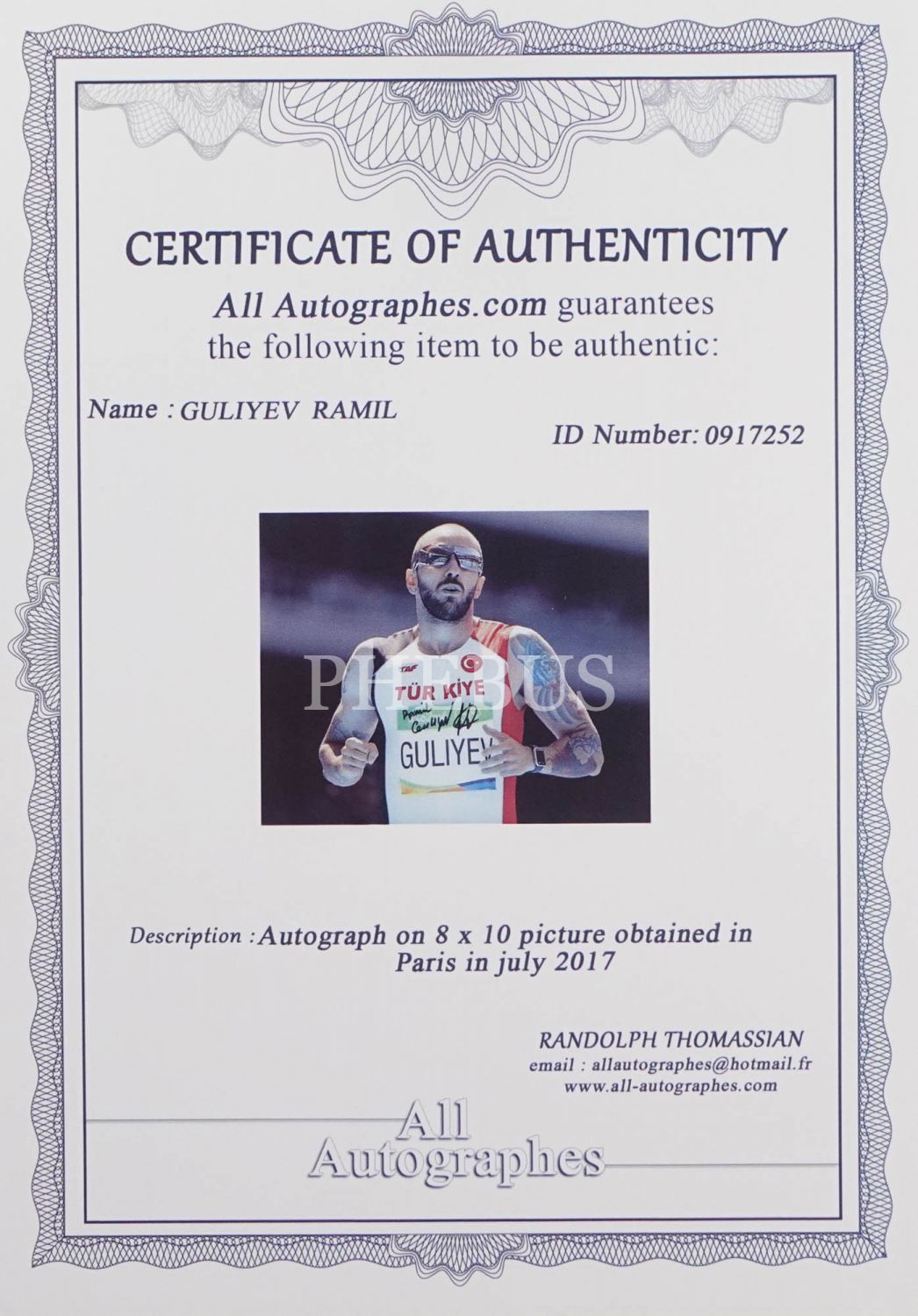 Milli Olimpiyat atletimiz Ramil Guliyev´in imzalı ve sertifikalı fotoğrafı, 21x25 cm....